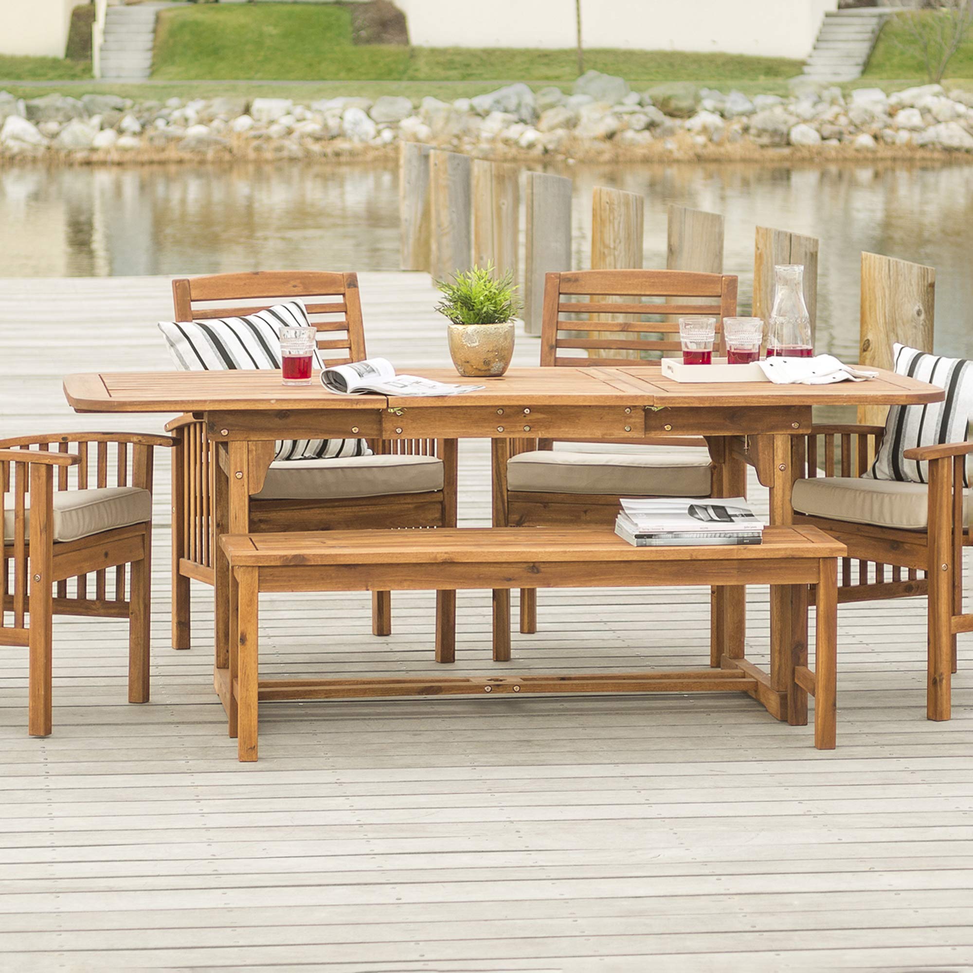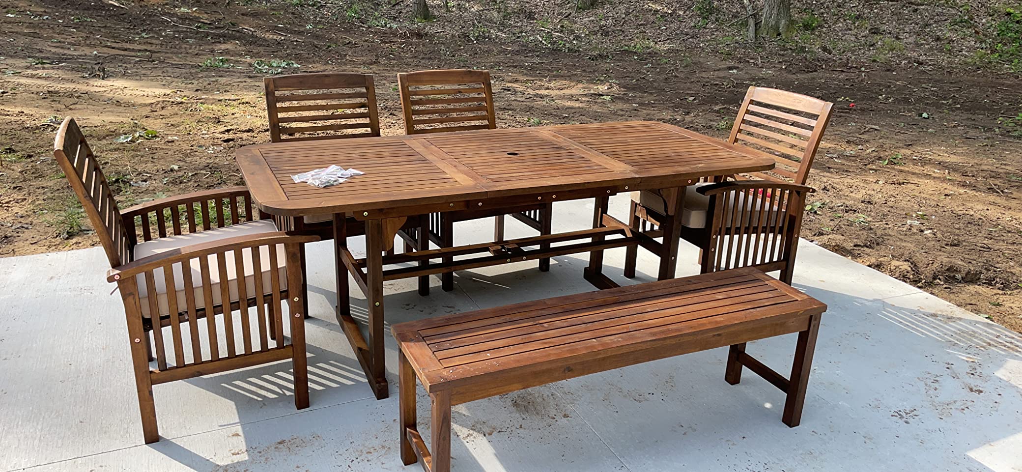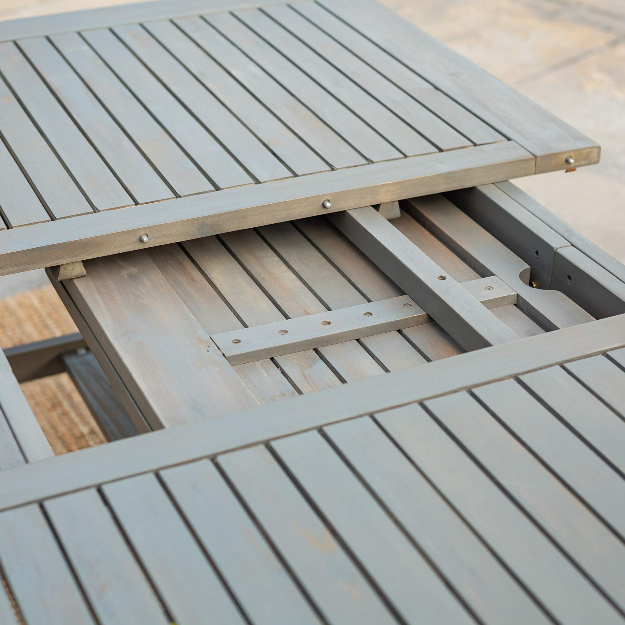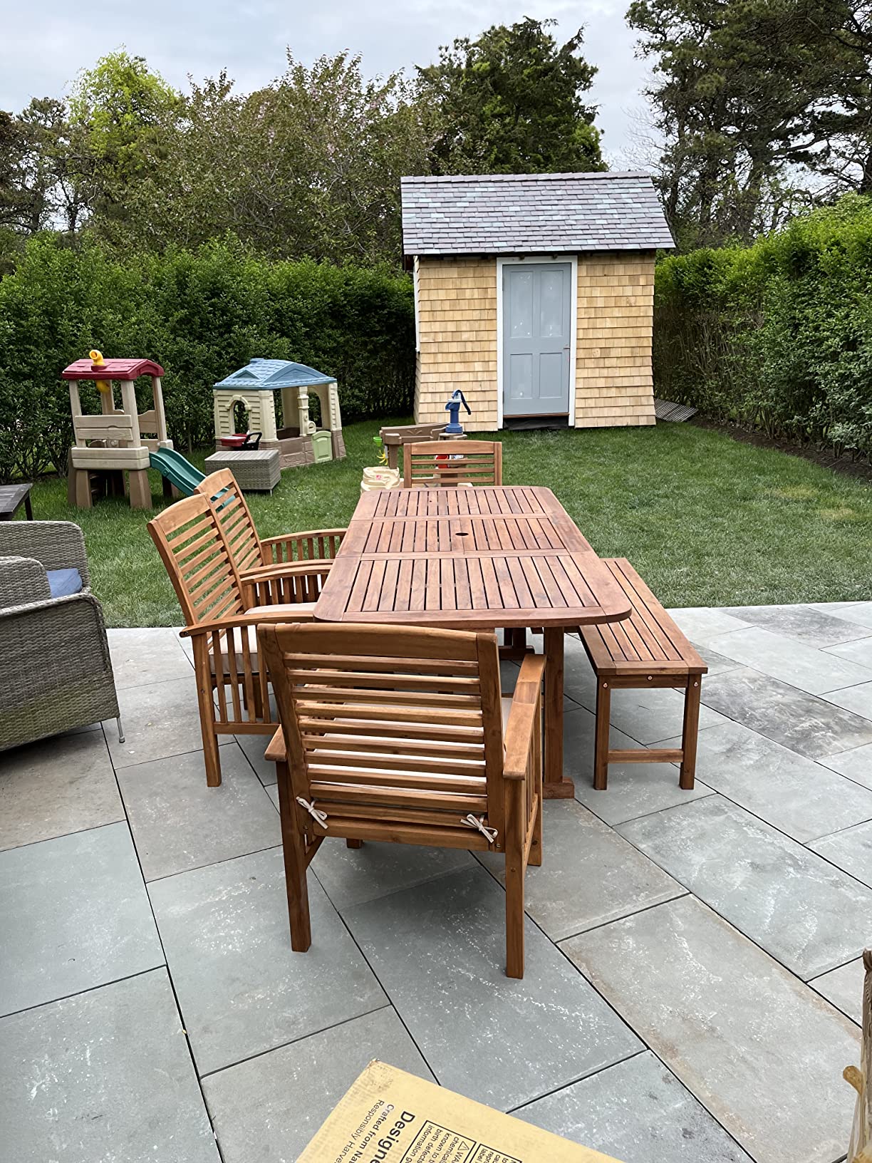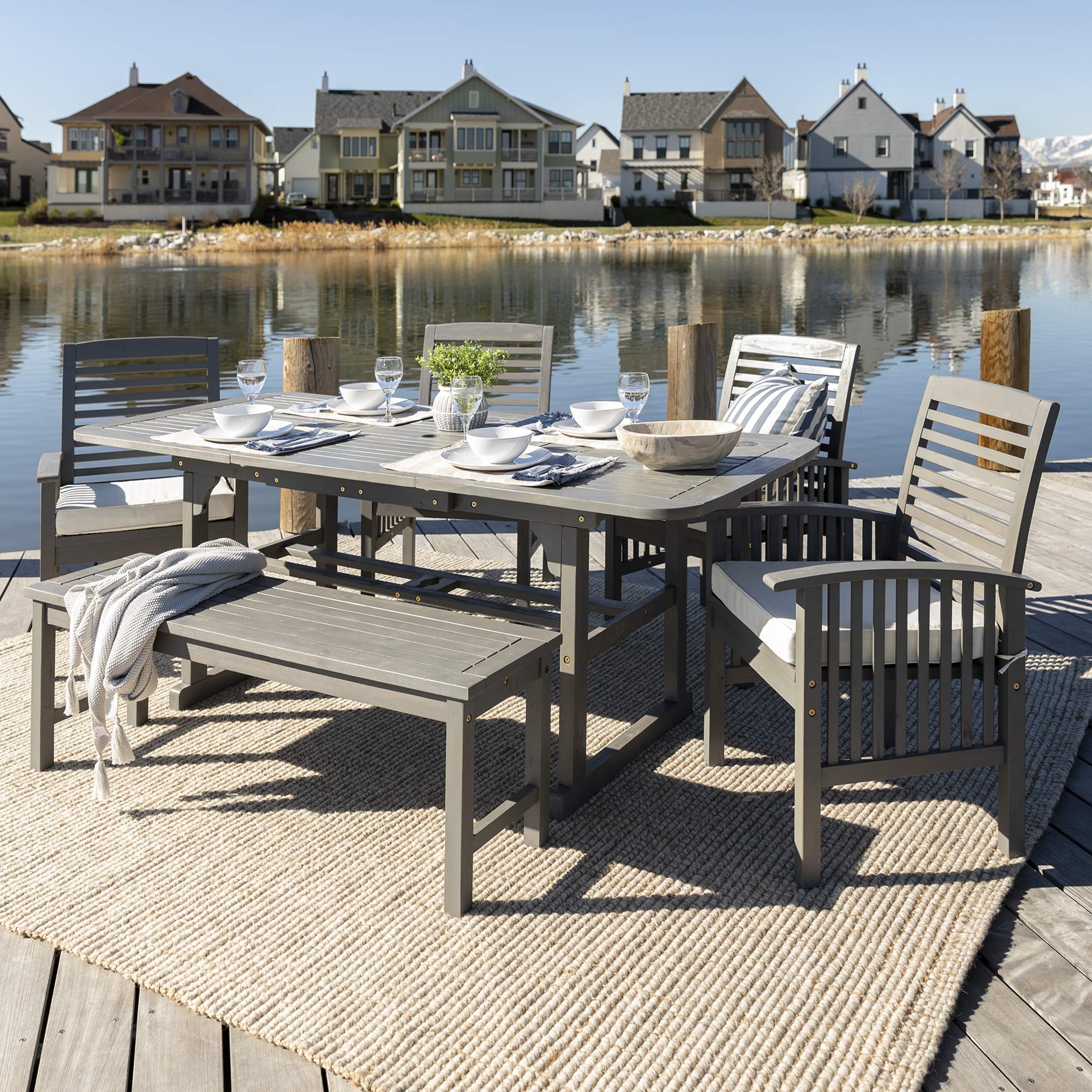 【Furniture】Maui Modern 6 Piece Solid Acacia Wood Slatted Outdoor Dining Set, Set of 6, Grey Wash