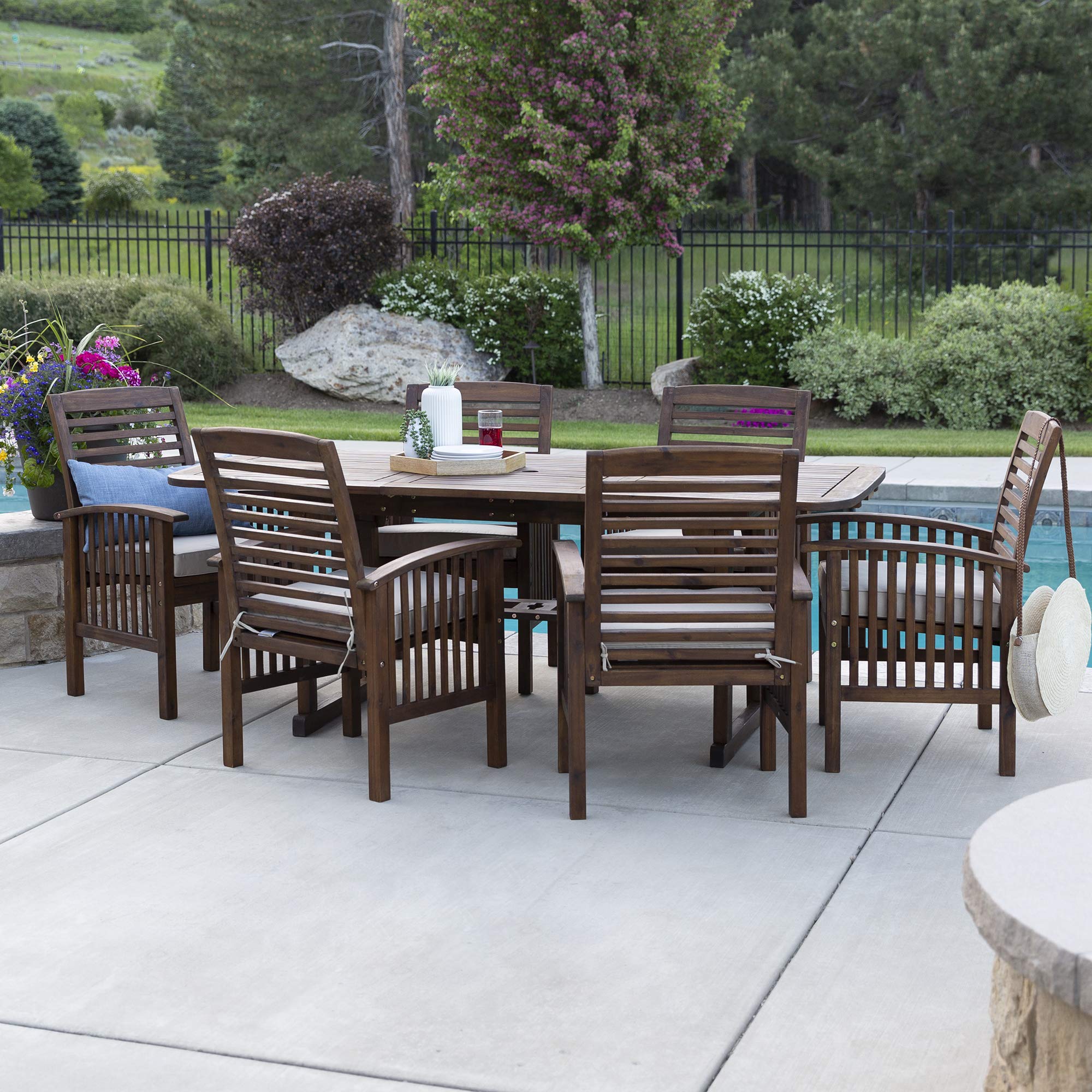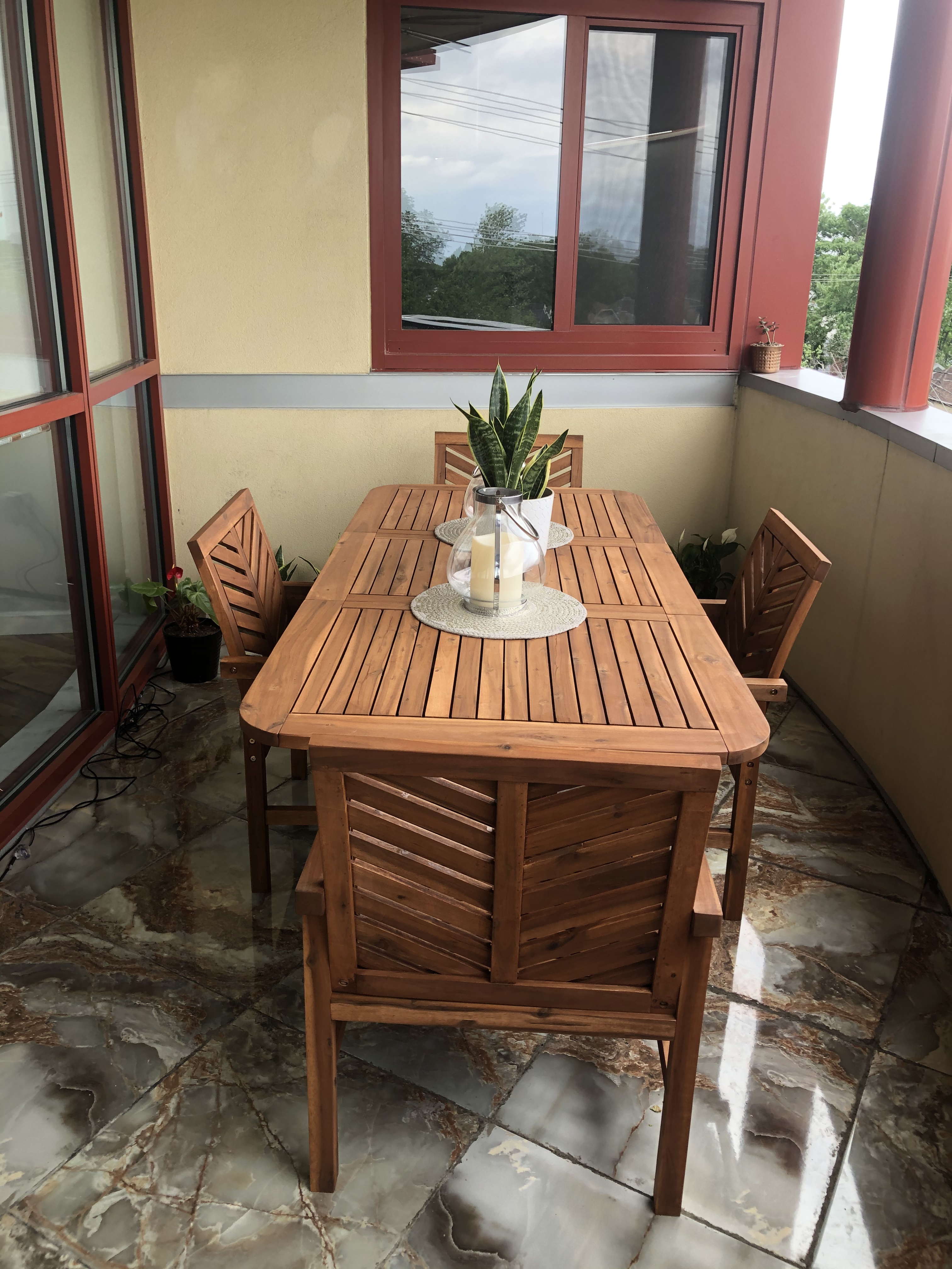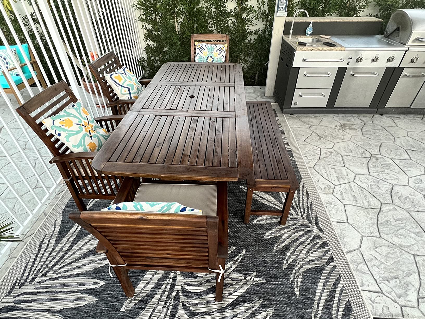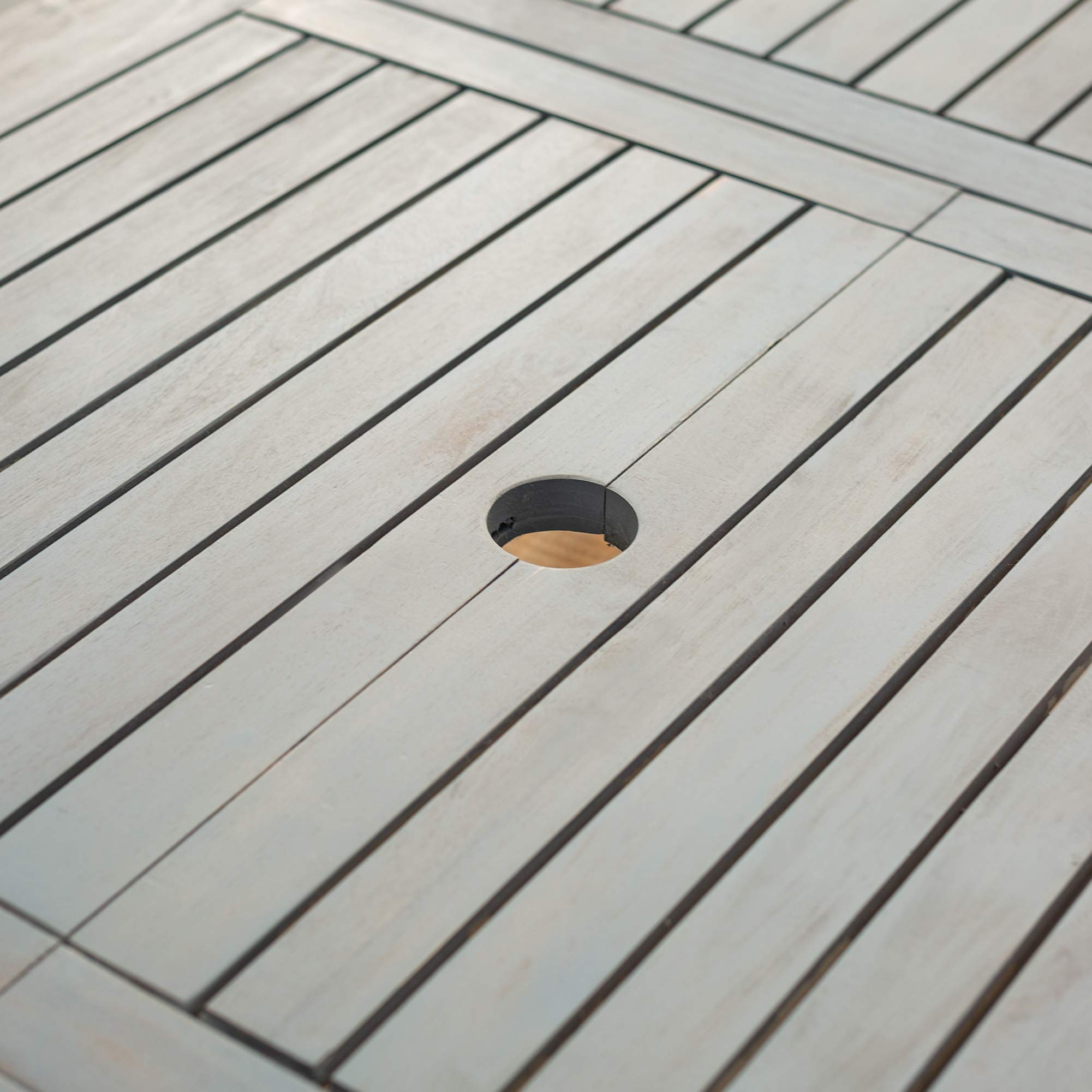 【Furniture】Maui Modern 6 Piece Solid Acacia Wood Slatted Outdoor Dining Set, Set of 6, Grey Wash