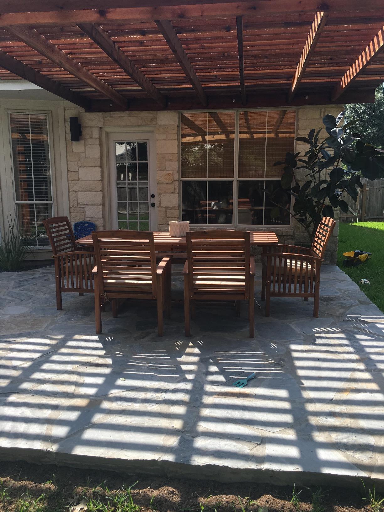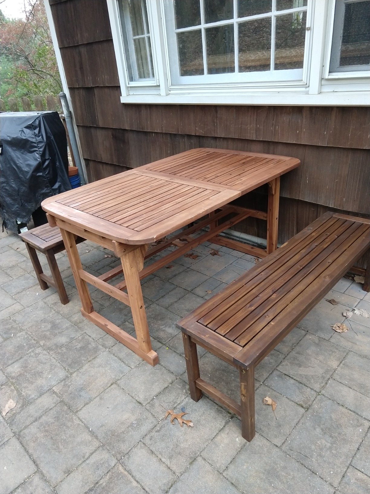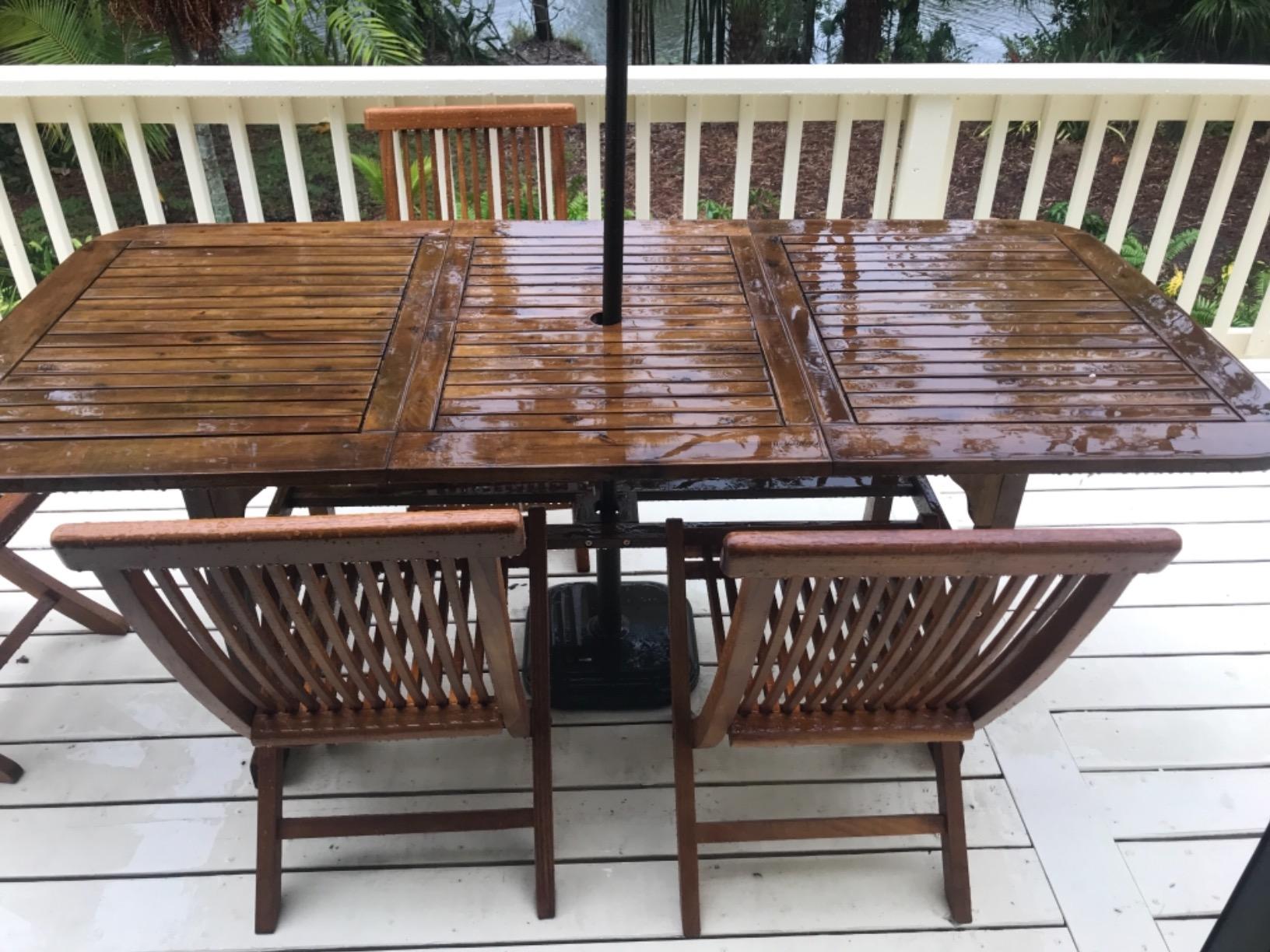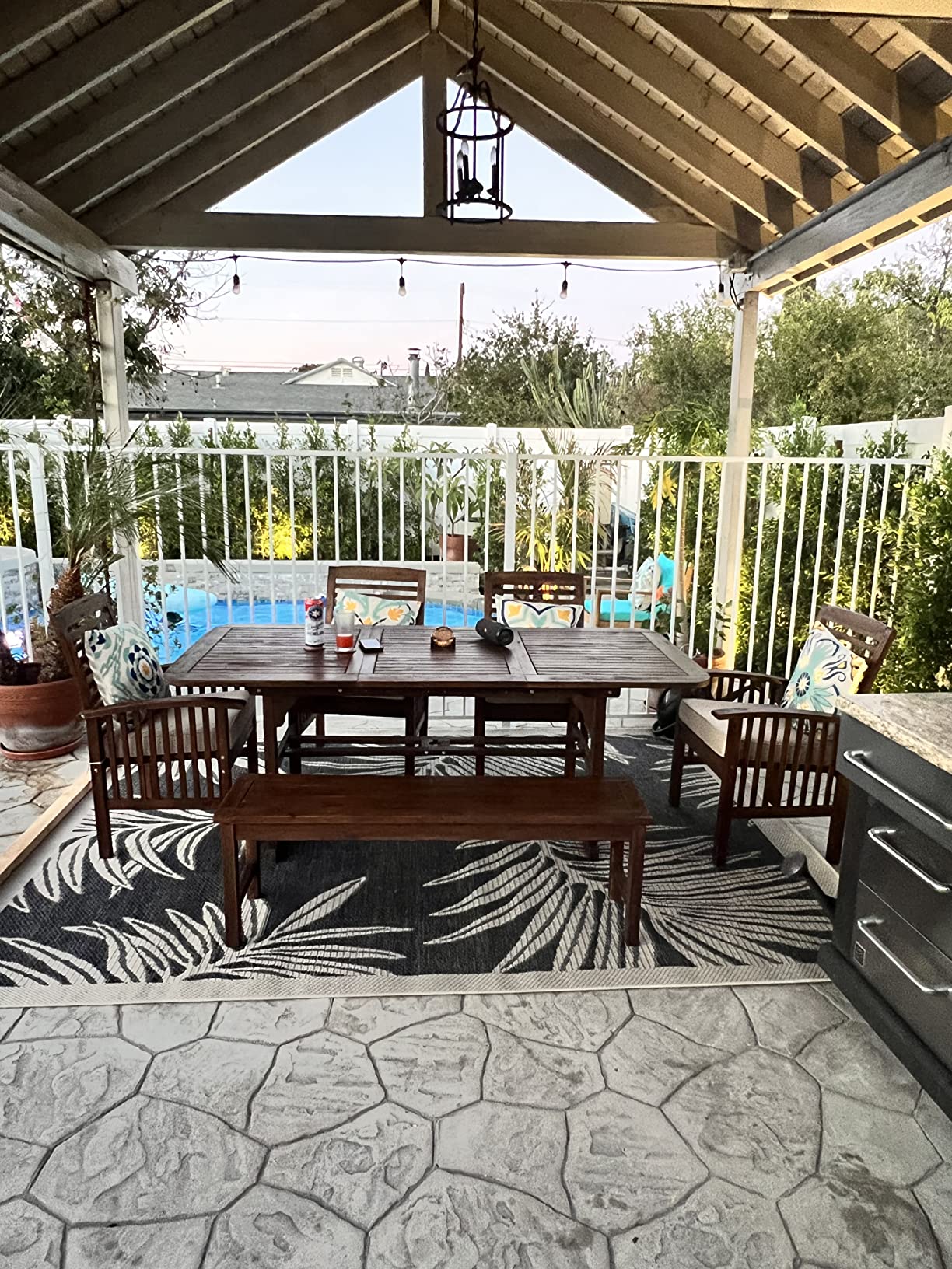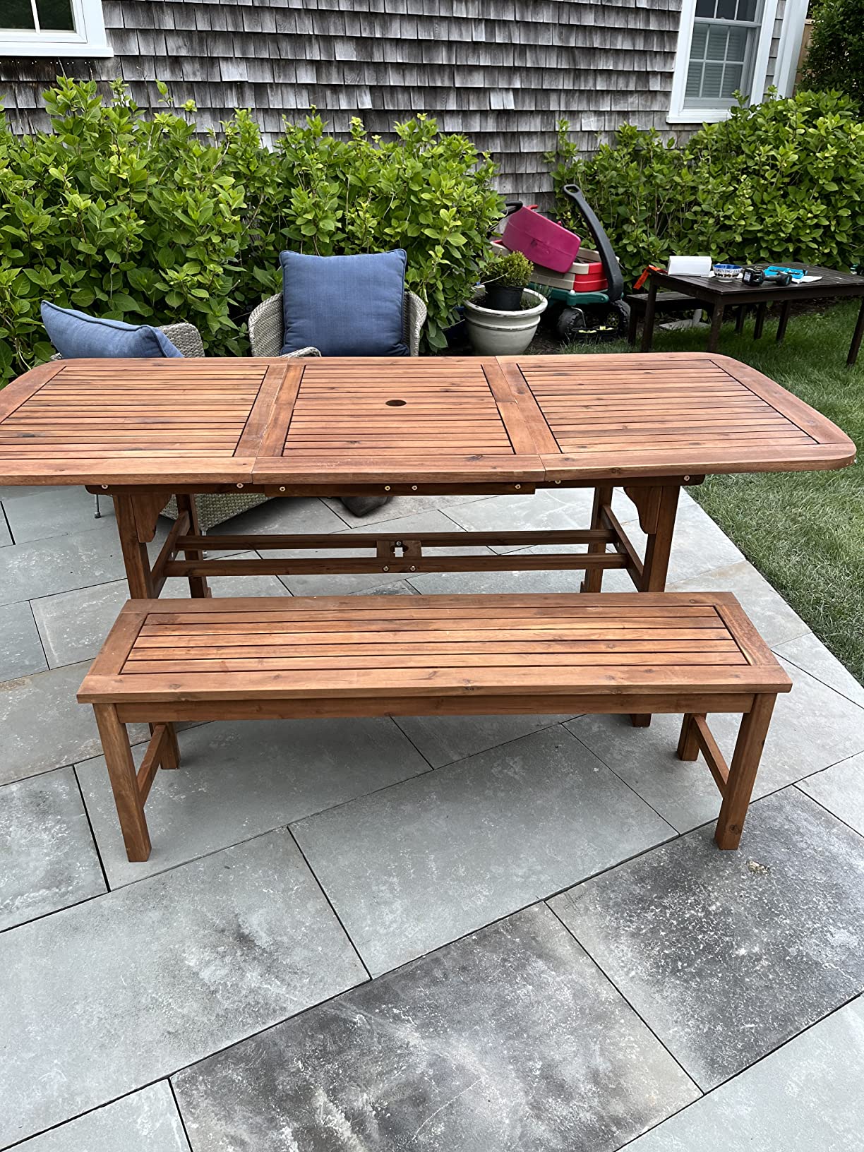 【Furniture】Maui Modern 6 Piece Solid Acacia Wood Slatted Outdoor Dining Set, Set of 6, Grey Wash