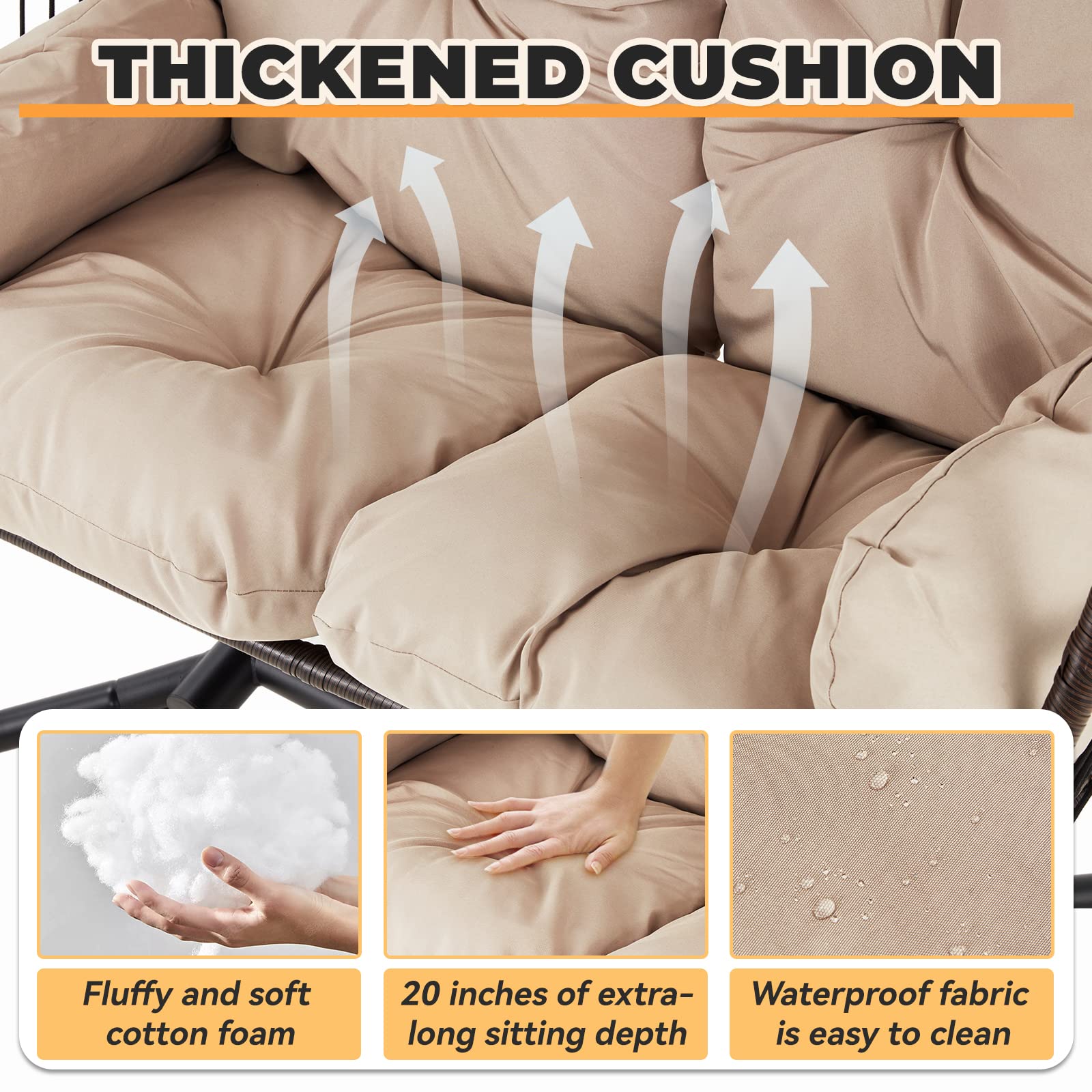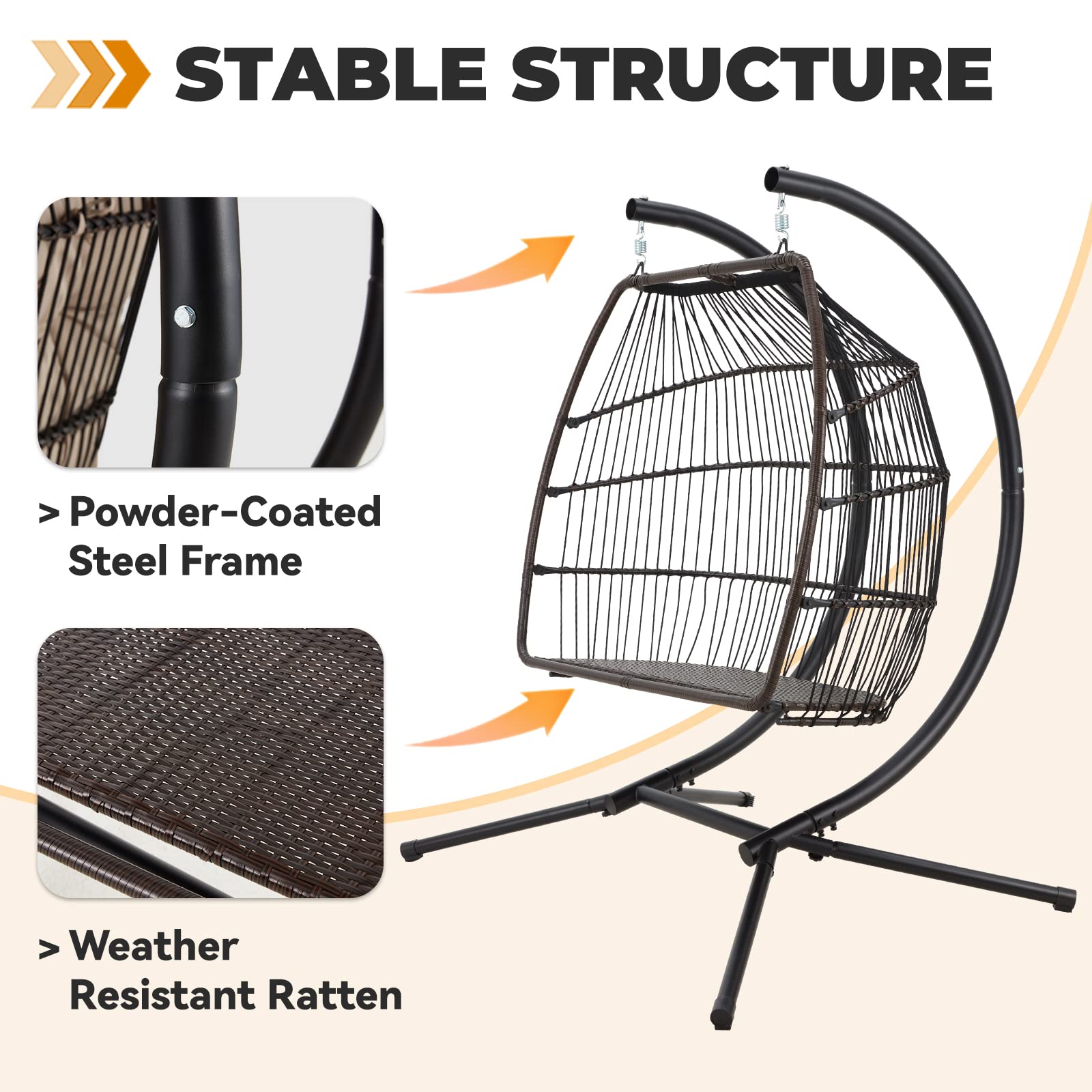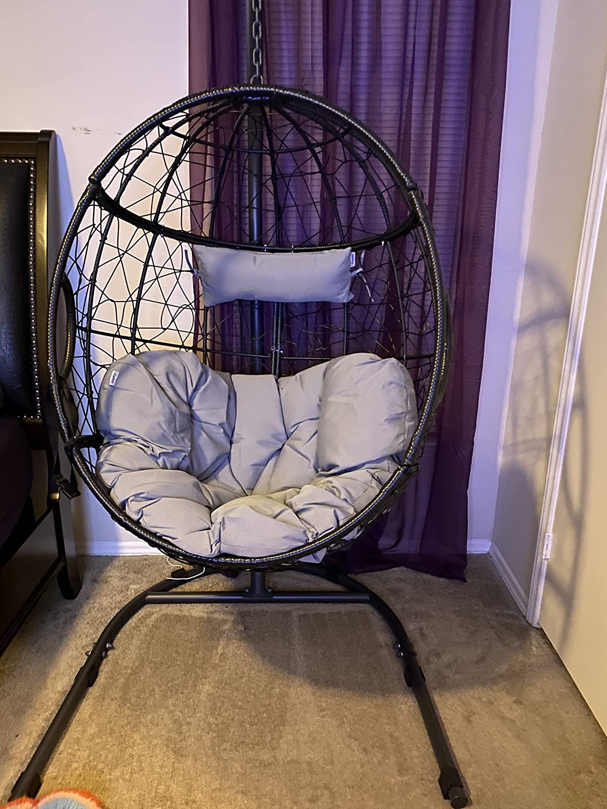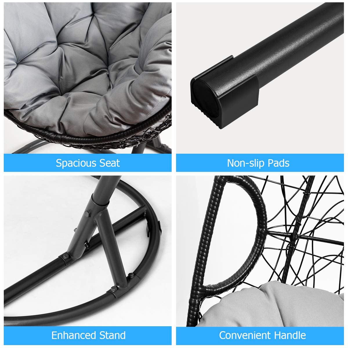 【Furniture】Hanging Egg Chair, 36.5-Width Oversized Swing Chair with C-Hammock Stand Set, Hammock Chair