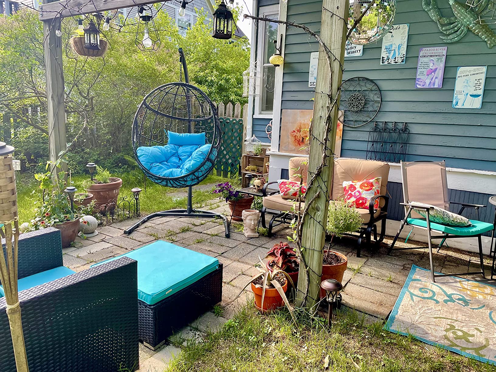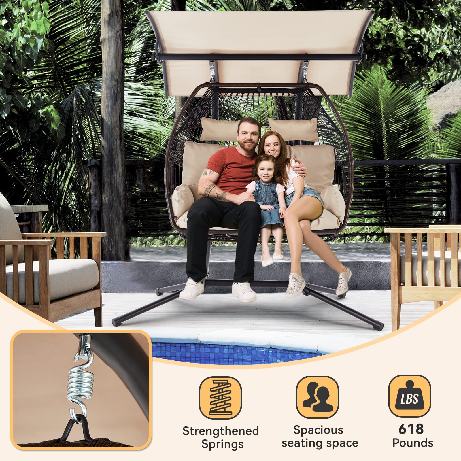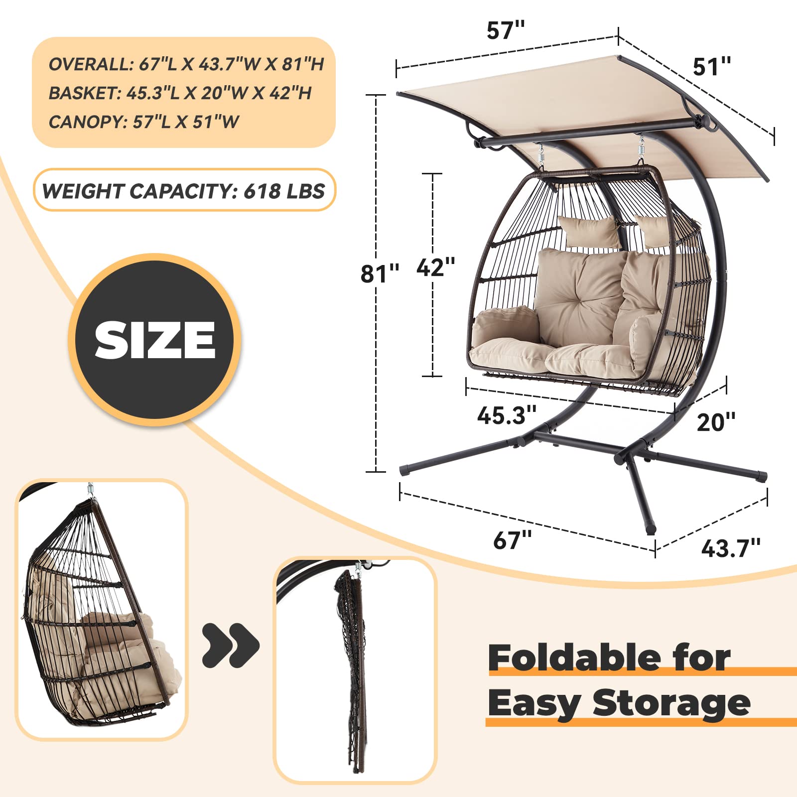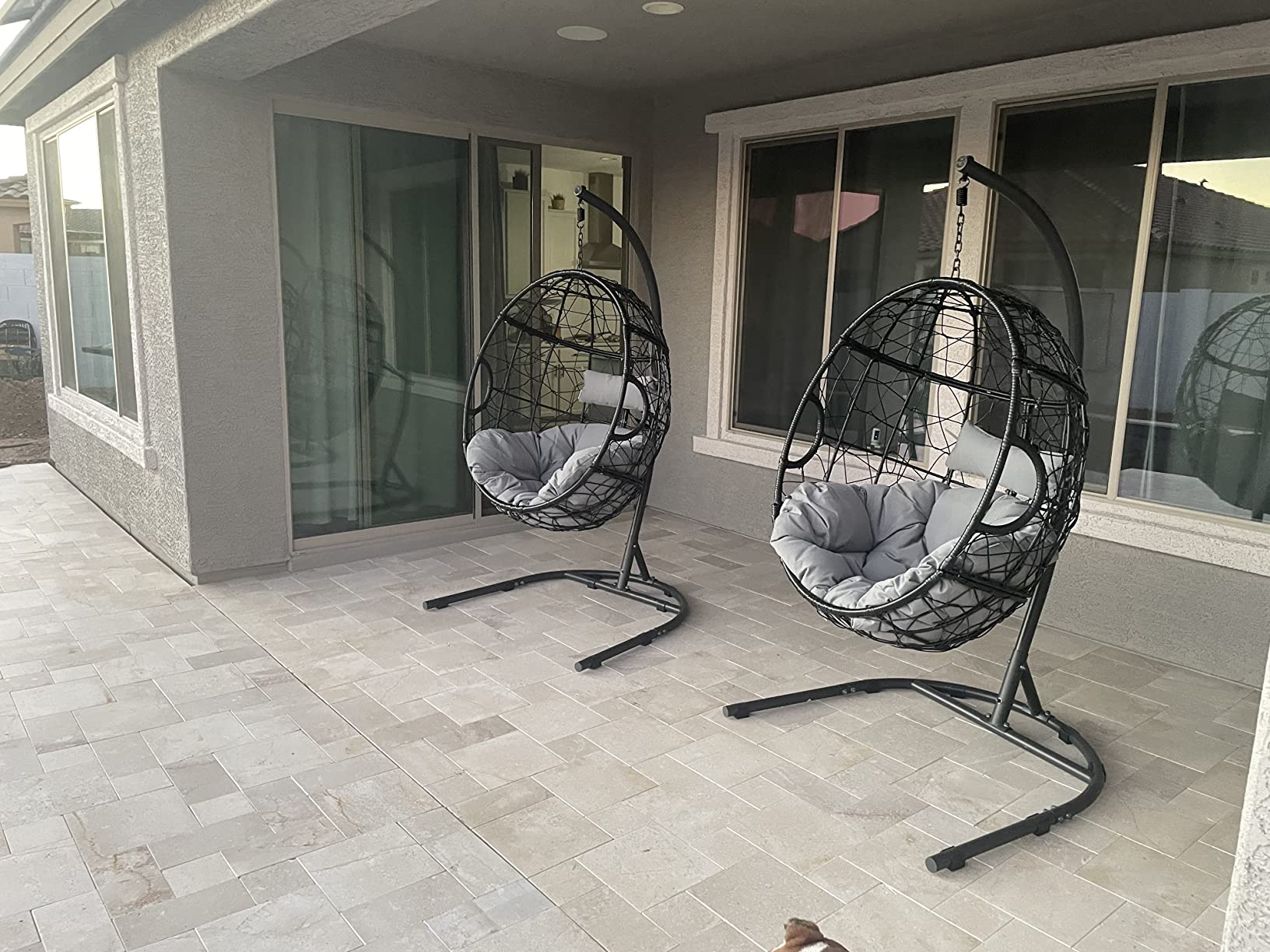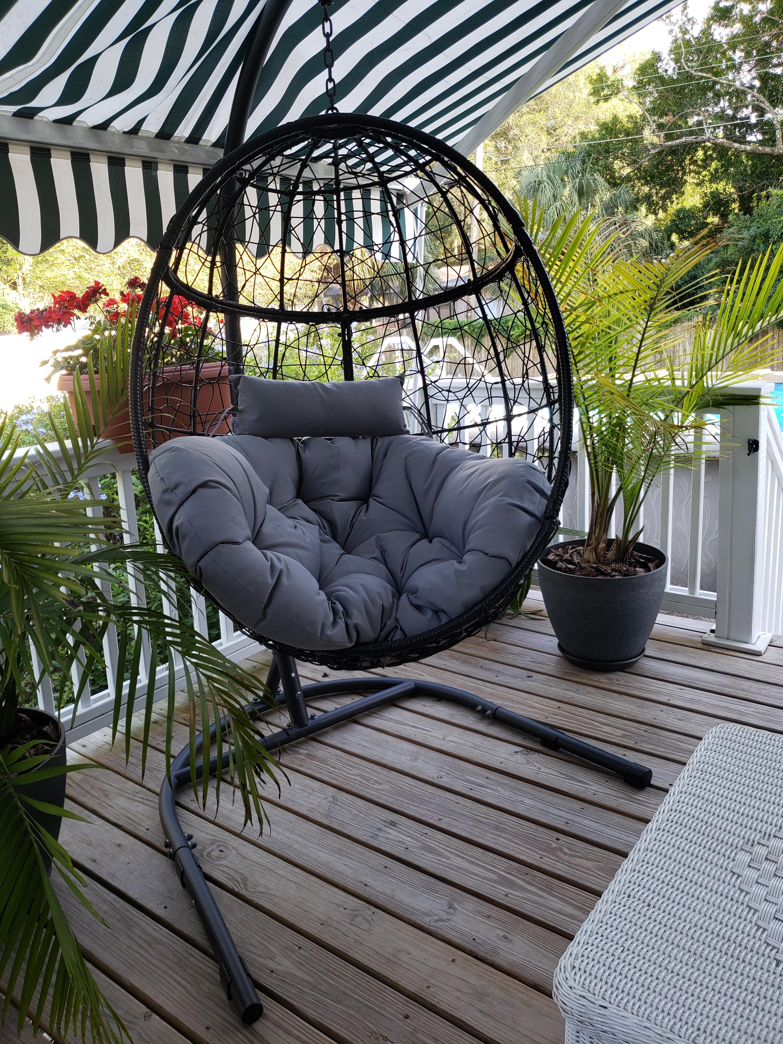 【Furniture】Hanging Egg Chair, 36.5-Width Oversized Swing Chair with C-Hammock Stand Set, Hammock Chair