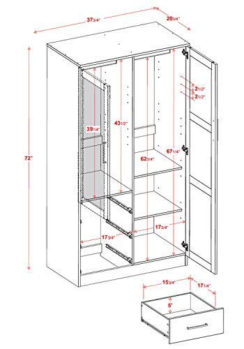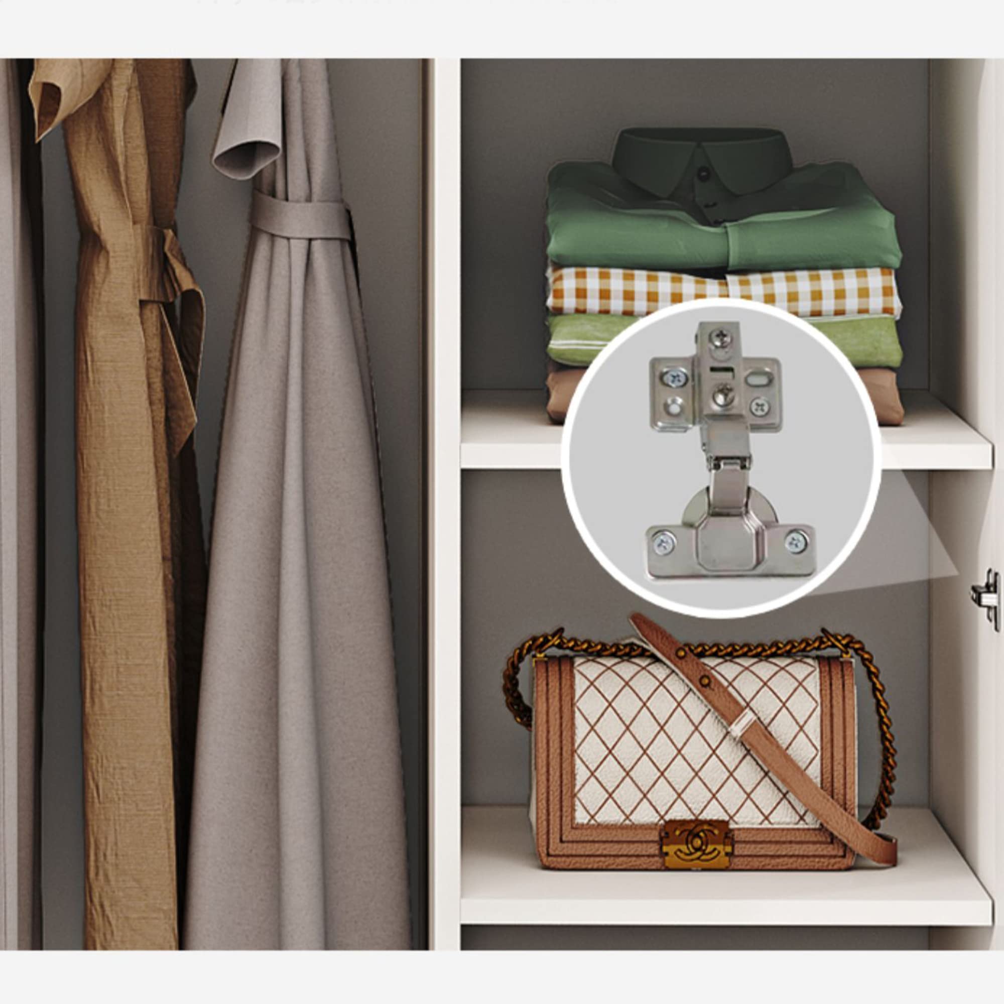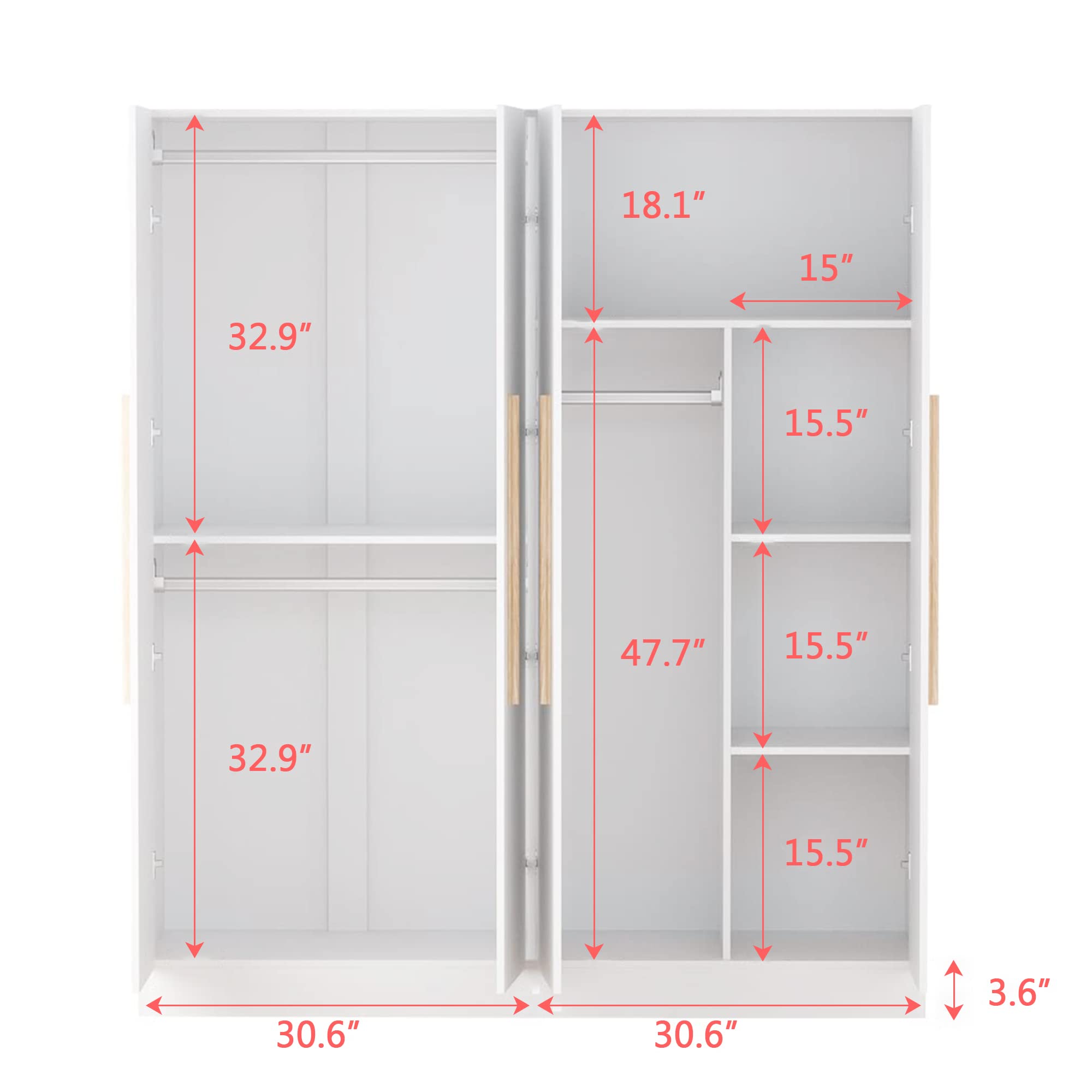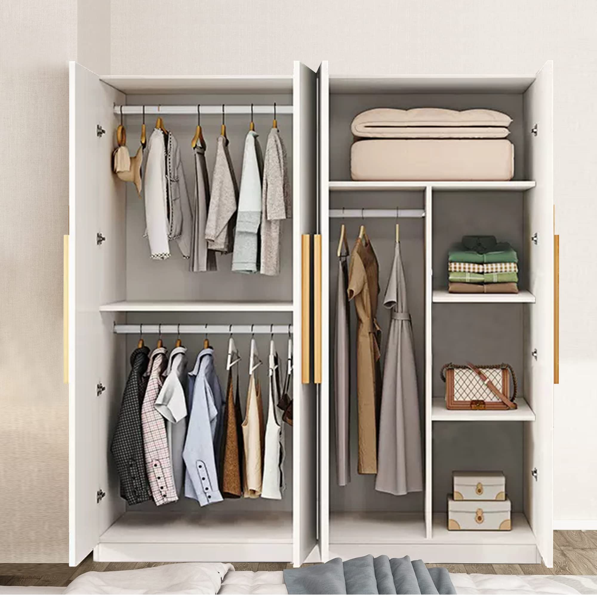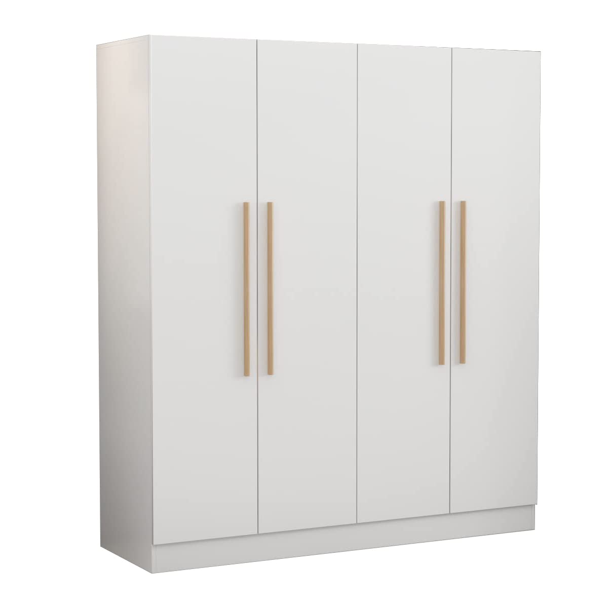 【Furniture】4 Doors Wardrobe Closet, Large Freestanding Wardrobe Cabinet with Storage Compartment & Hanging Rod