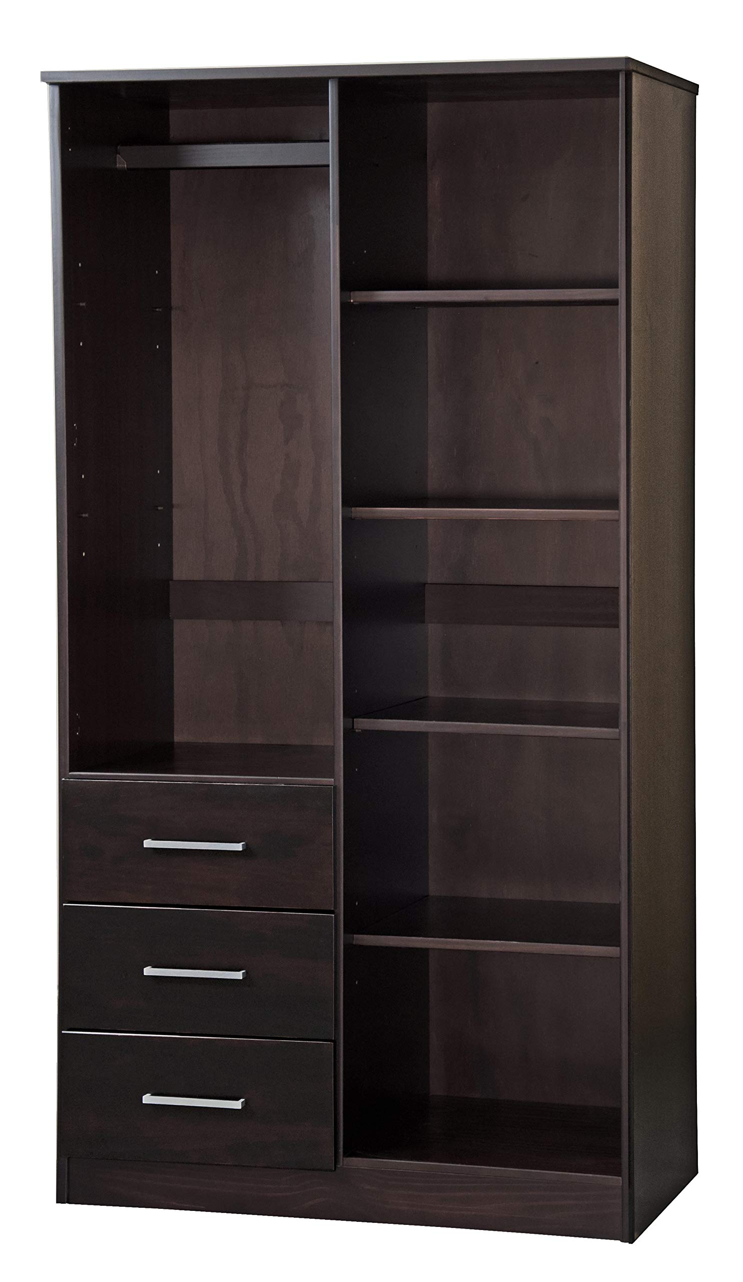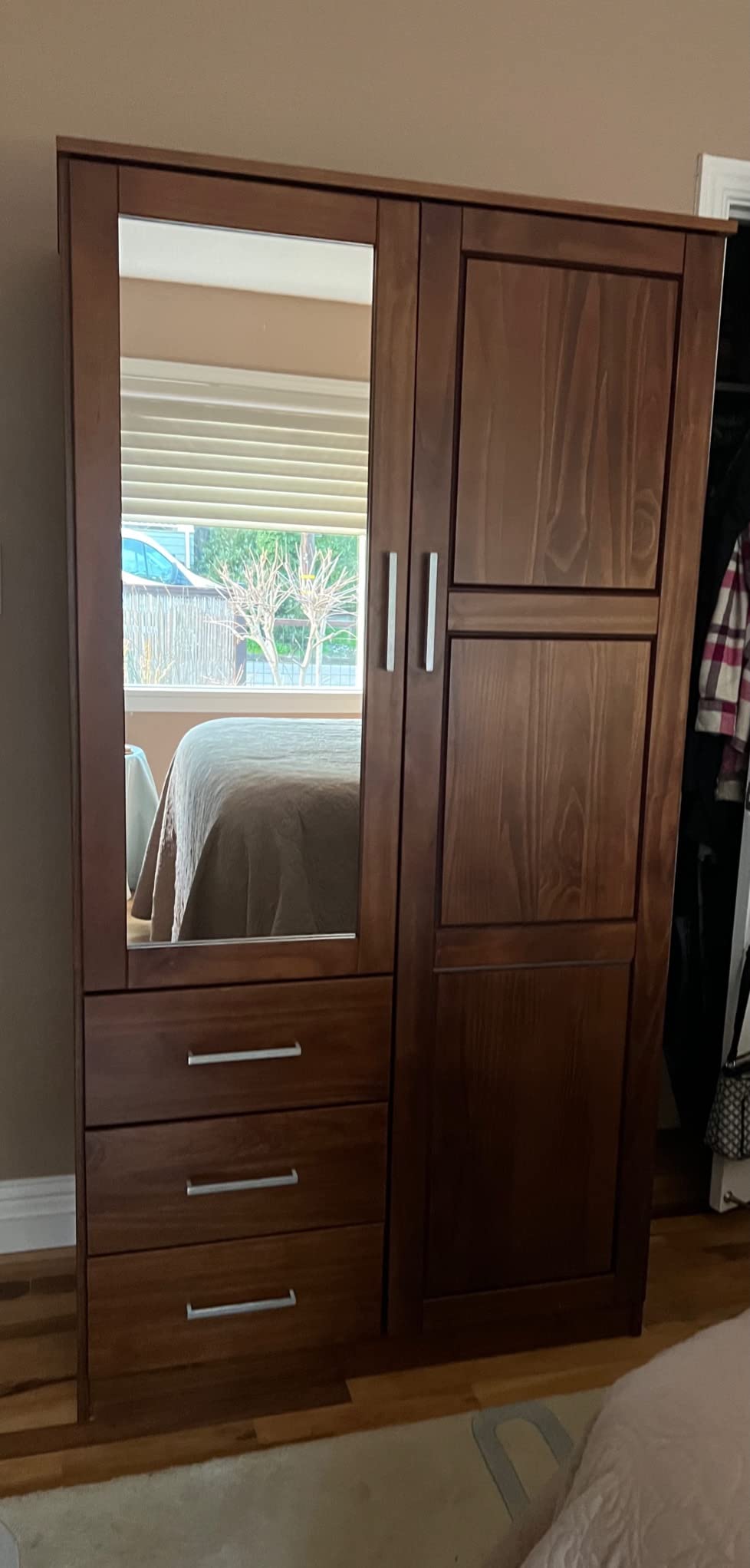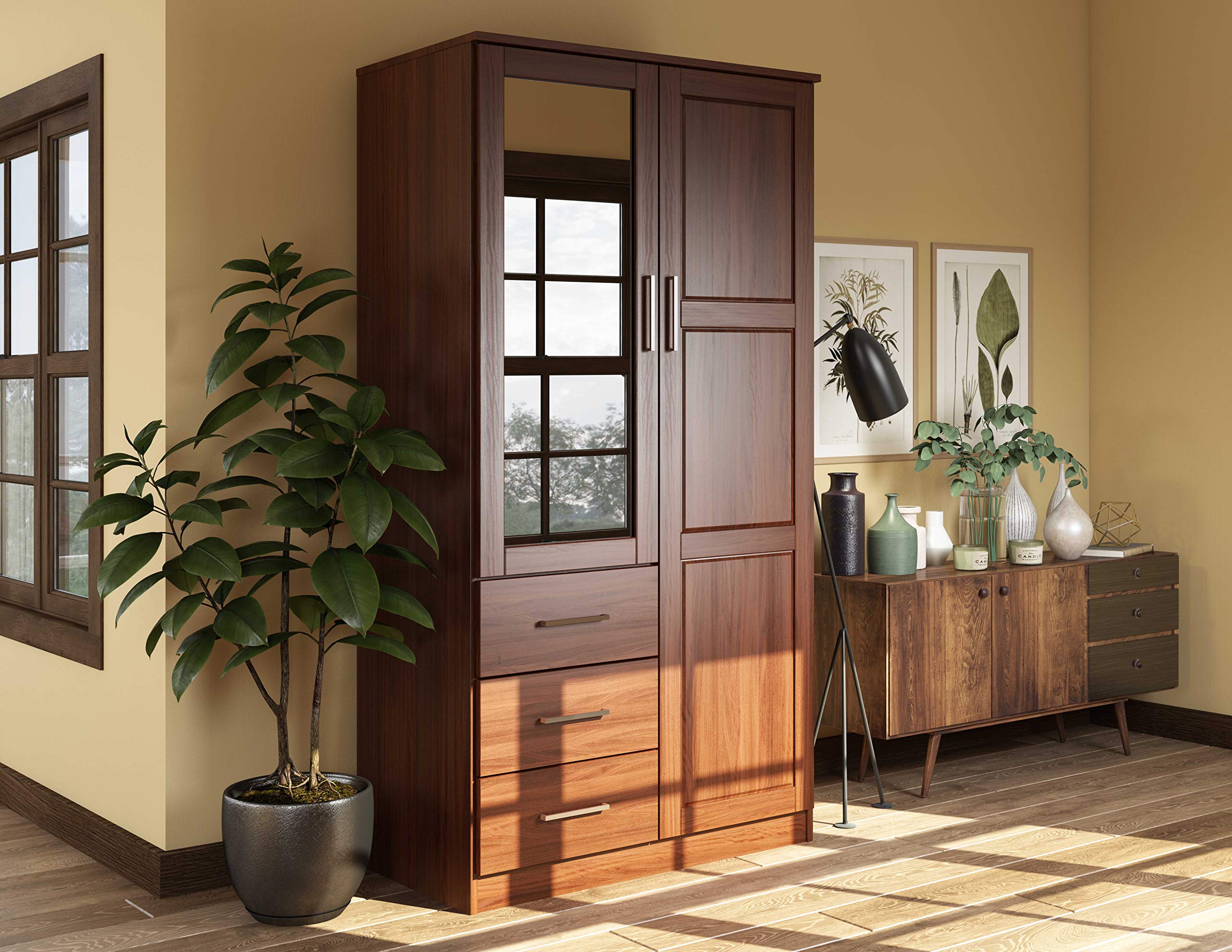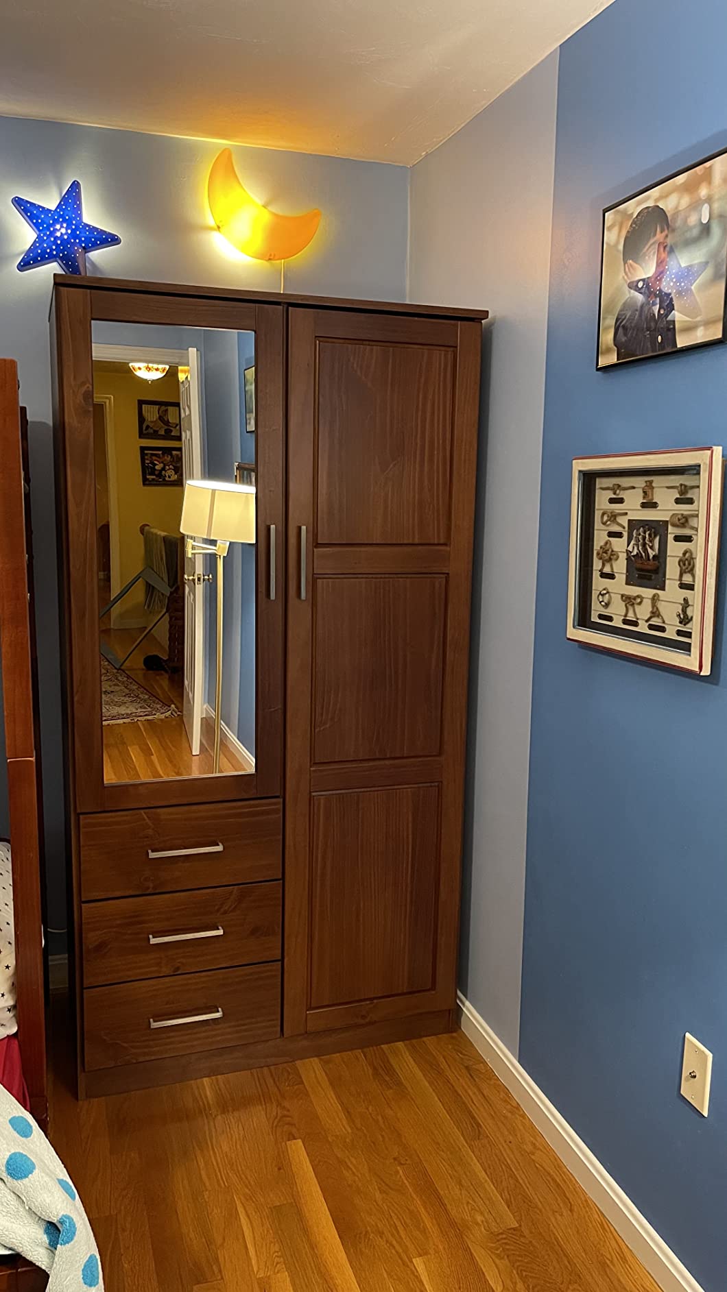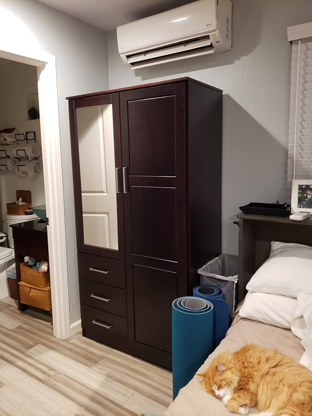 【Furniture】4 Doors Wardrobe Closet, Large Freestanding Wardrobe Cabinet with Storage Compartment & Hanging Rod