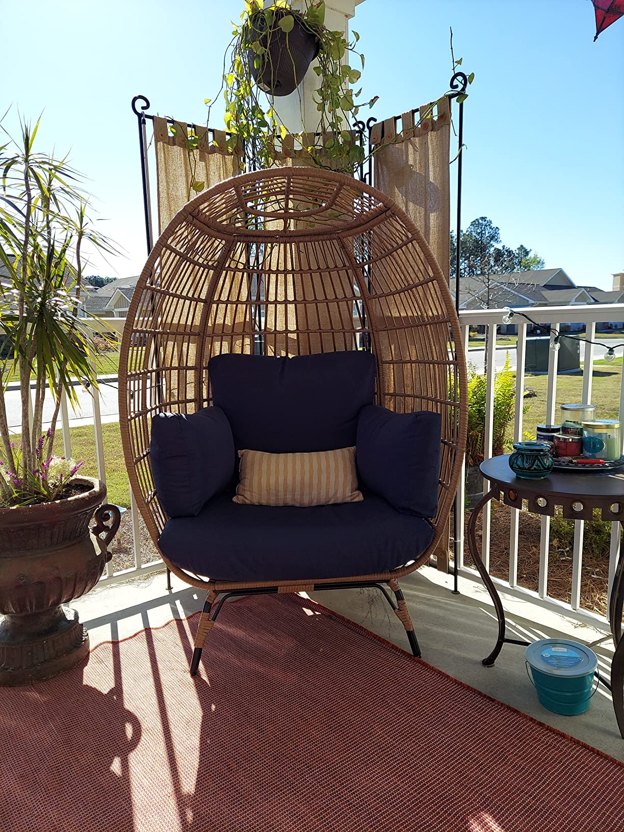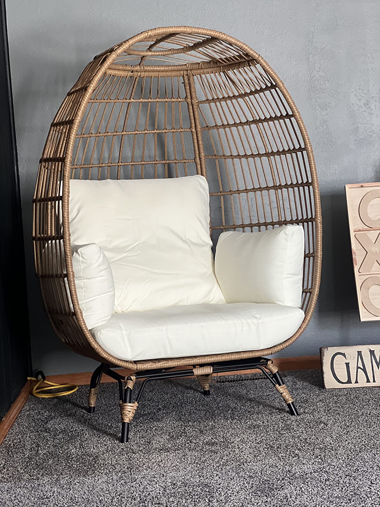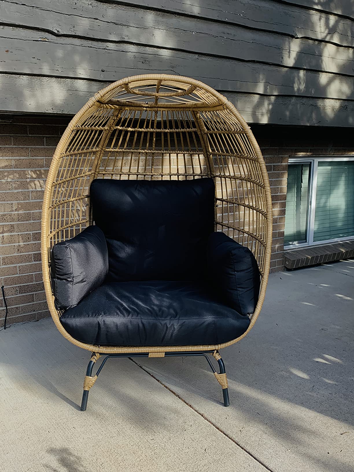 【Furniture】Wicker Egg Chair, Oversized Indoor Outdoor Lounger for Patio, Backyard, Living Room w/ 4 Cushions