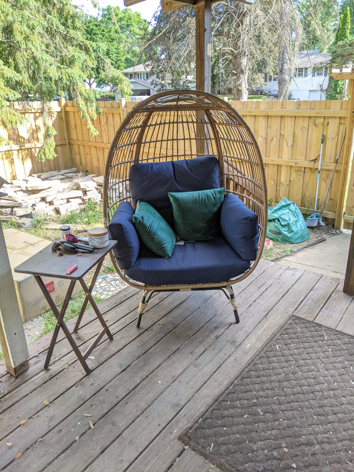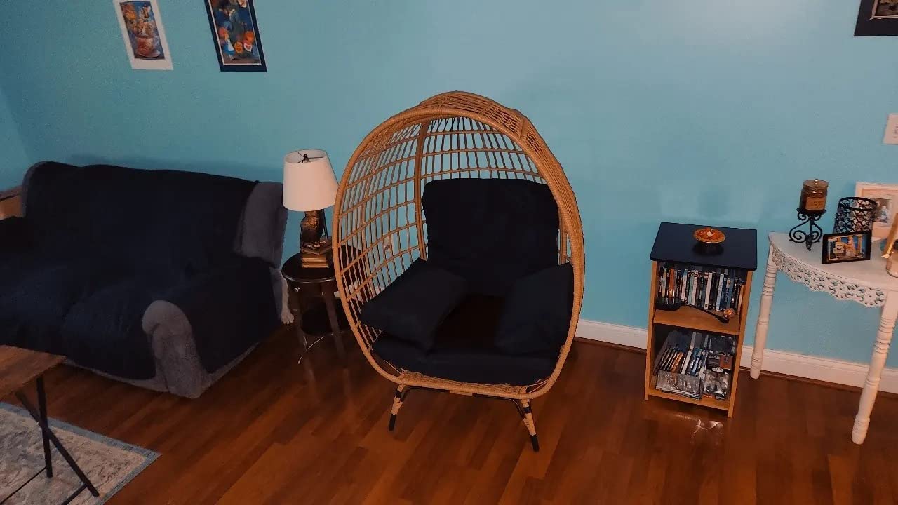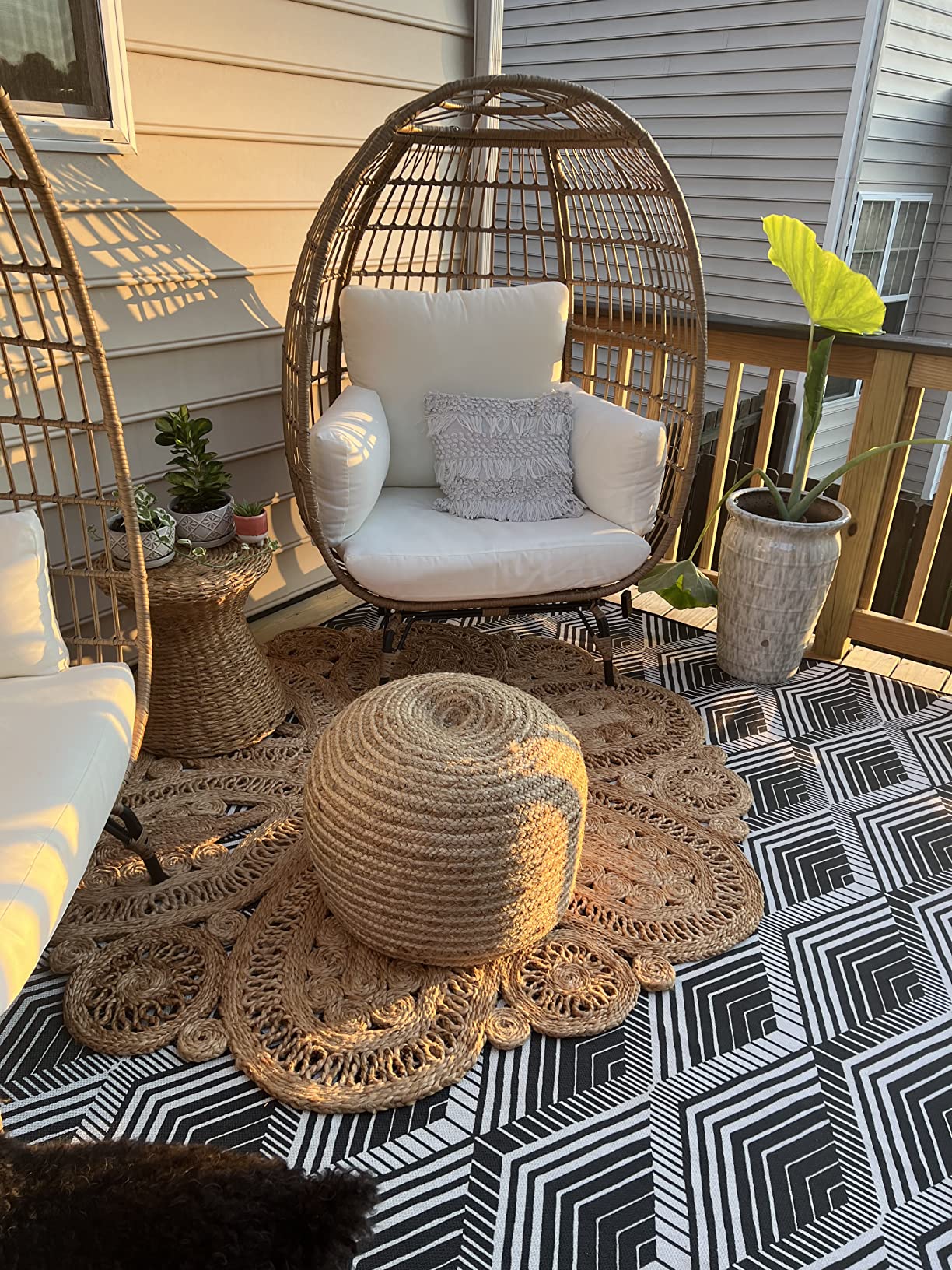 【Furniture】Wicker Egg Chair, Oversized Indoor Outdoor Lounger for Patio, Backyard, Living Room w/ 4 Cushions