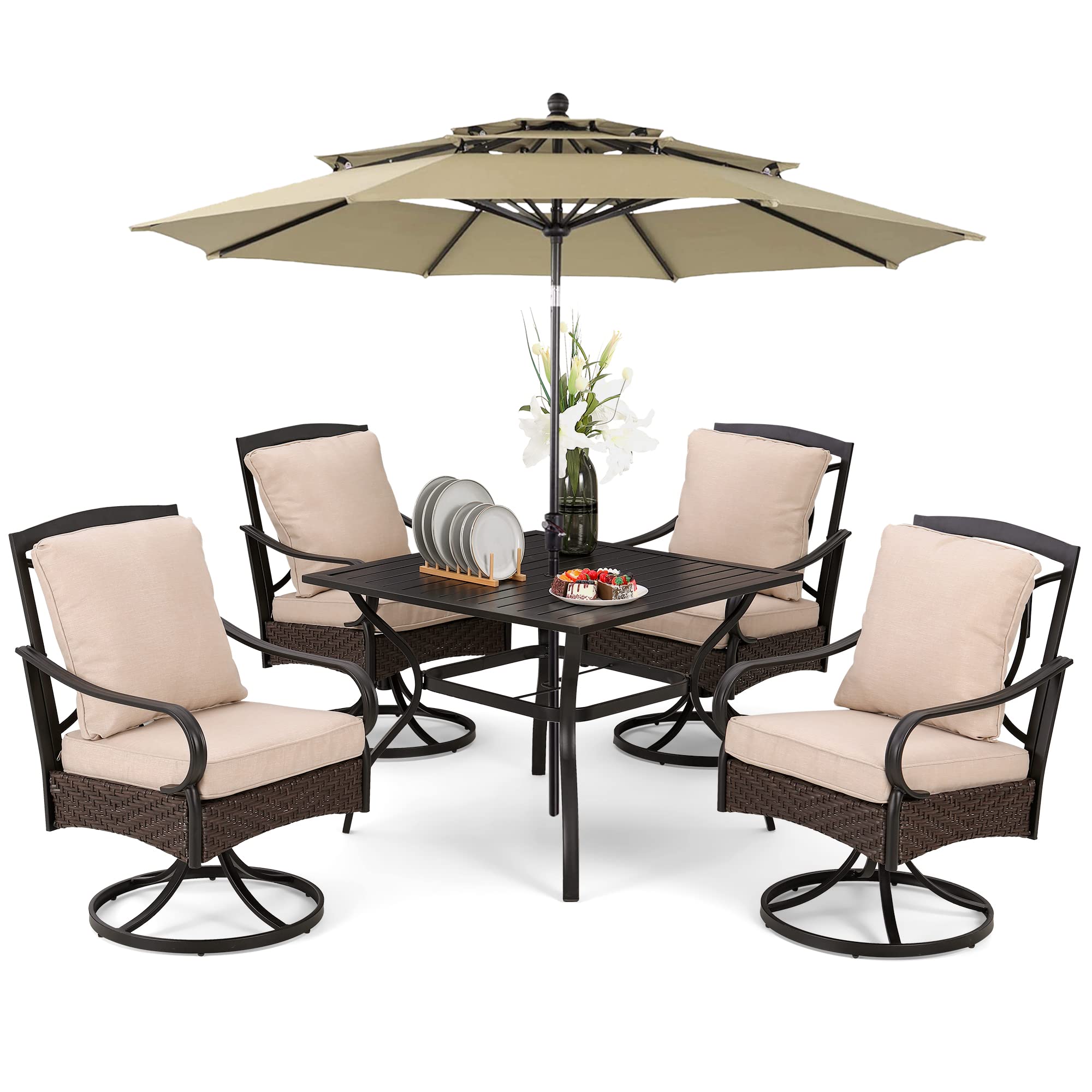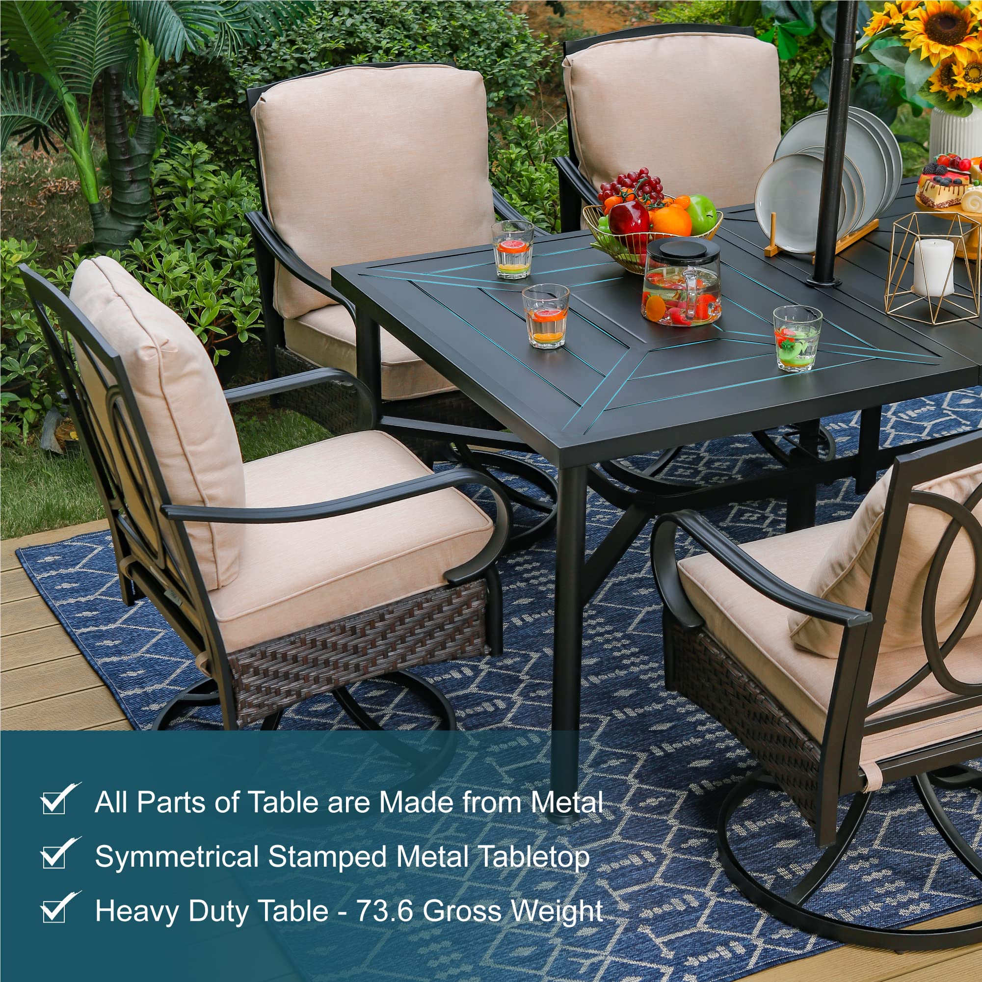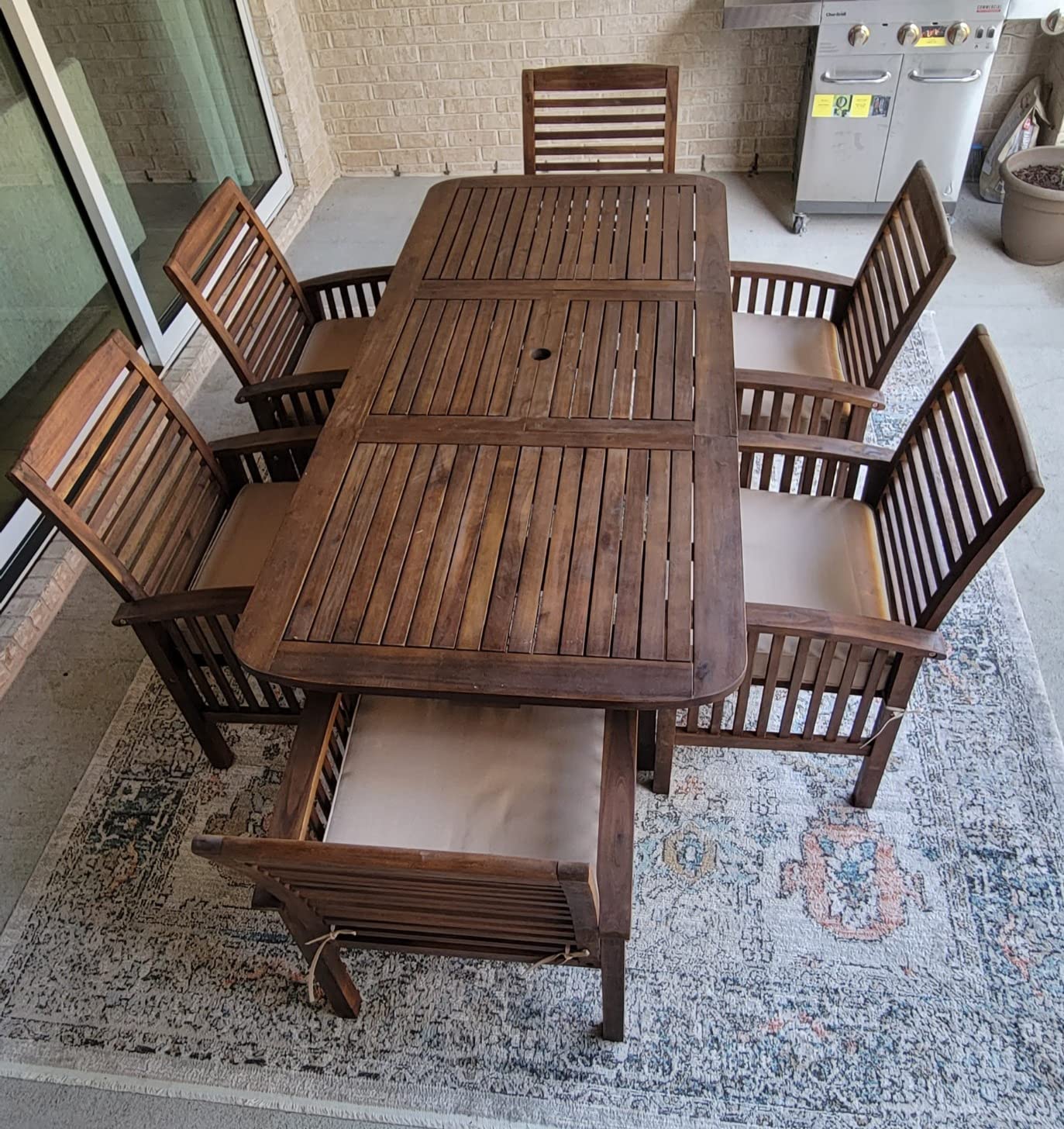 【Furniture】Outdoor Patio Dining Table and Chairs Set with Umbrella, Heavy Duty 8 Piece Patio Dining Set