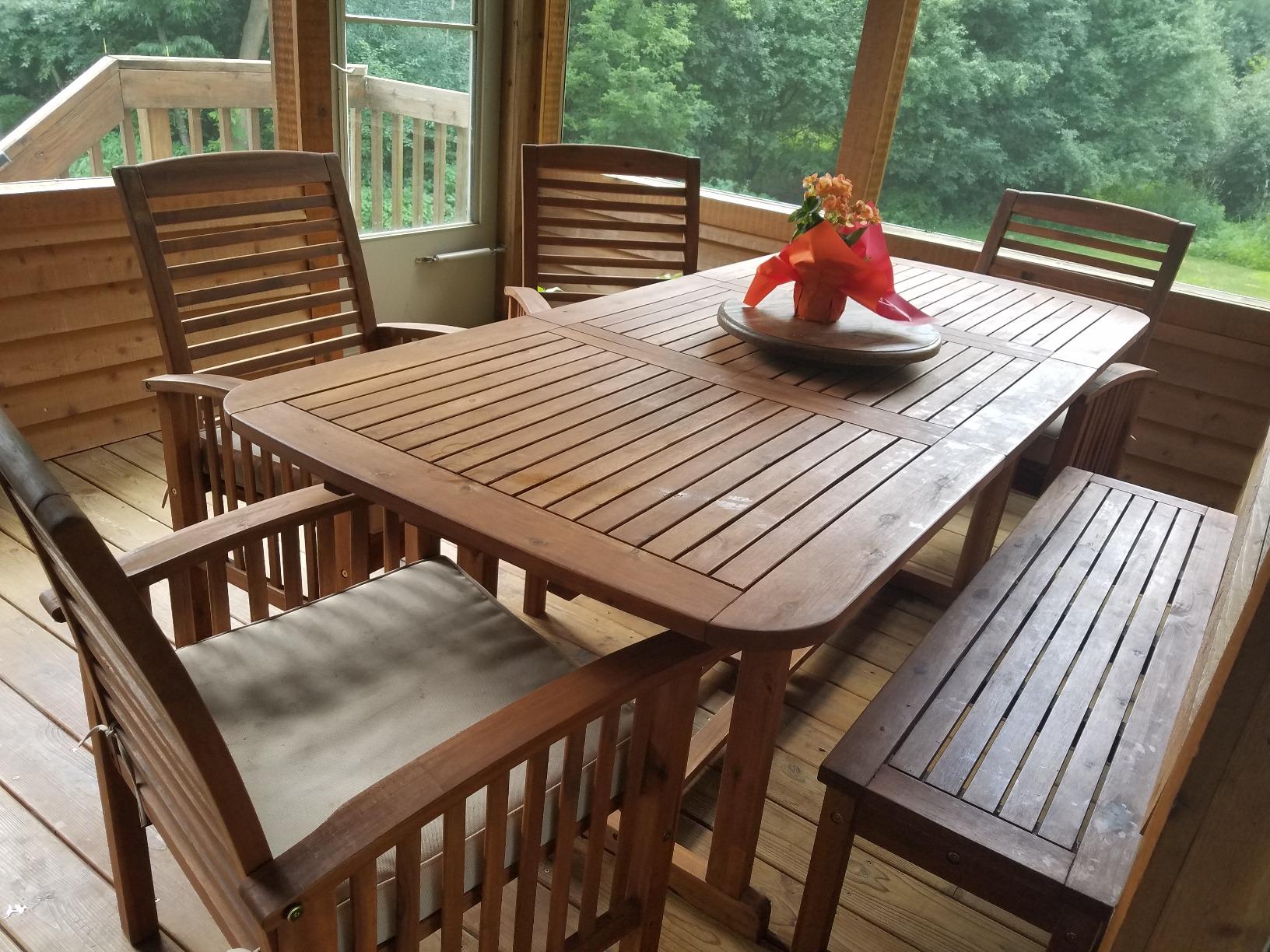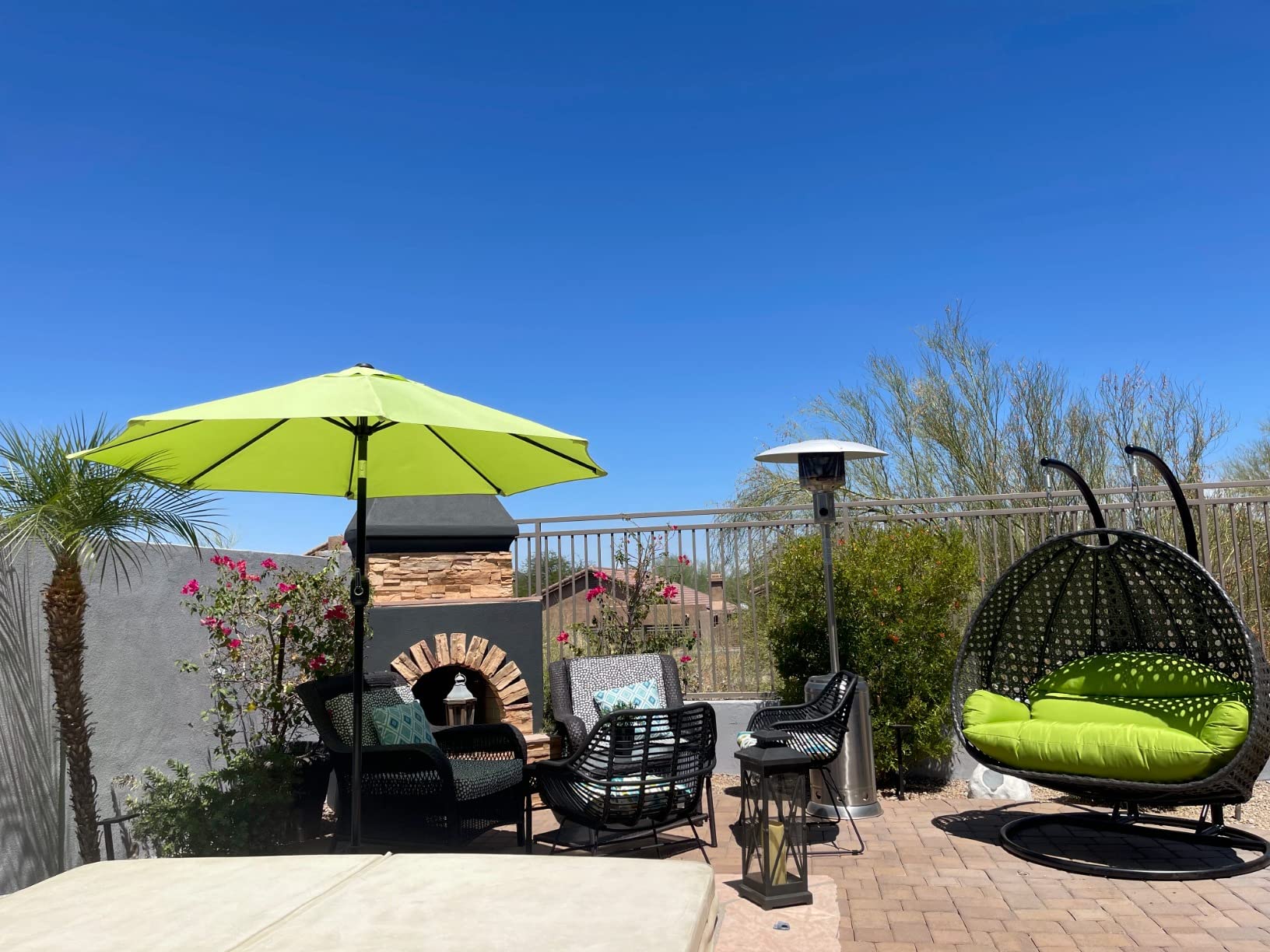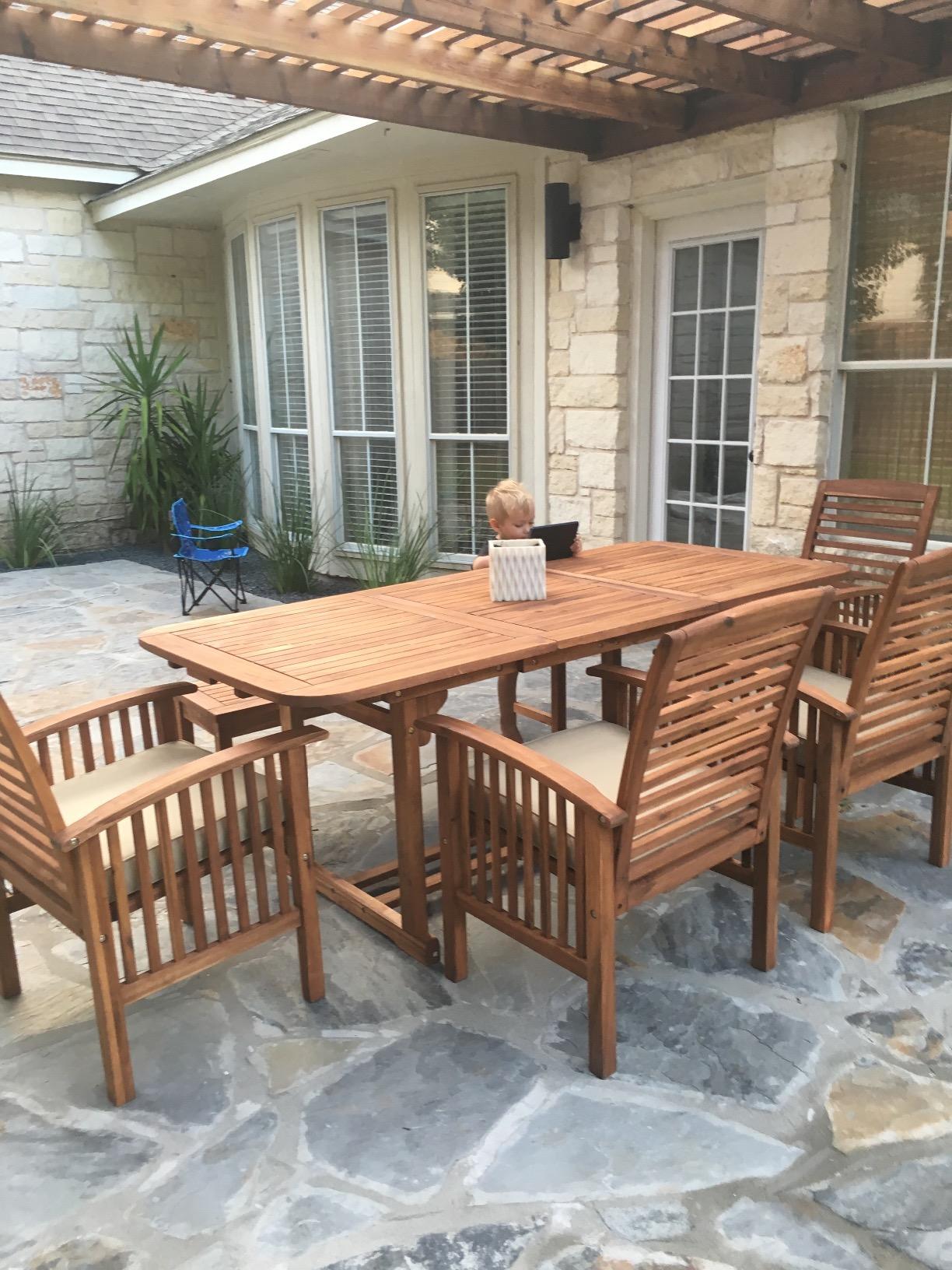 【Furniture】Outdoor Patio Dining Table and Chairs Set with Umbrella, Heavy Duty 8 Piece Patio Dining Set