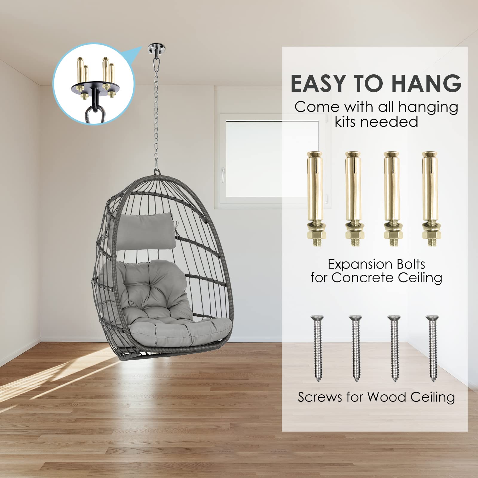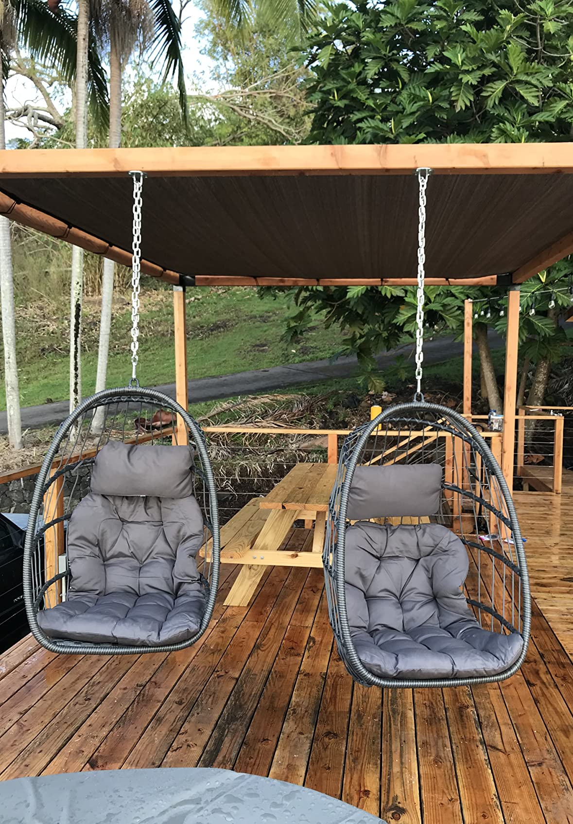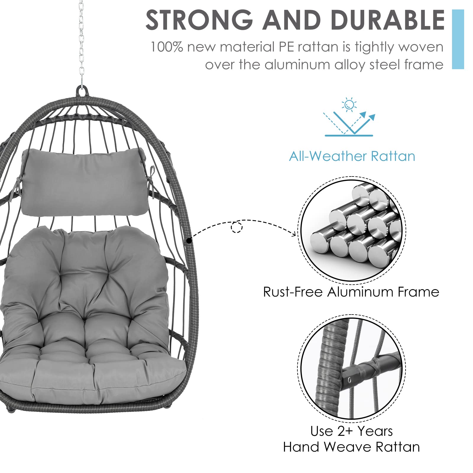 【Furniture】Wicker Rattan Hammock Egg Swing Chair with Hanging Chain, Aluminum Frame & UV Resistant Cushion