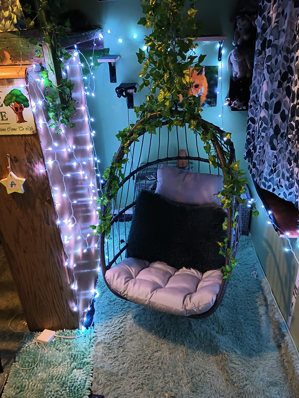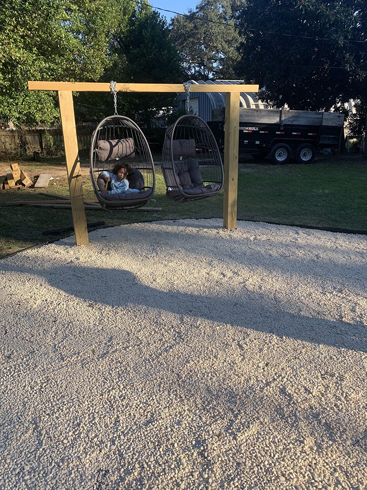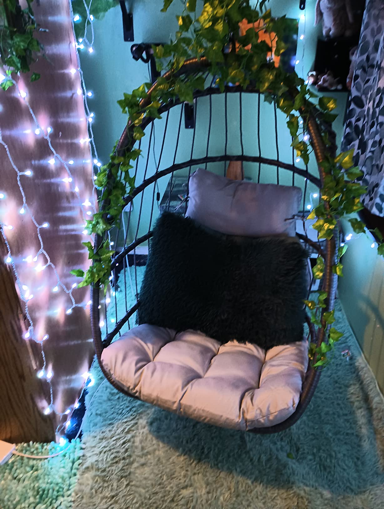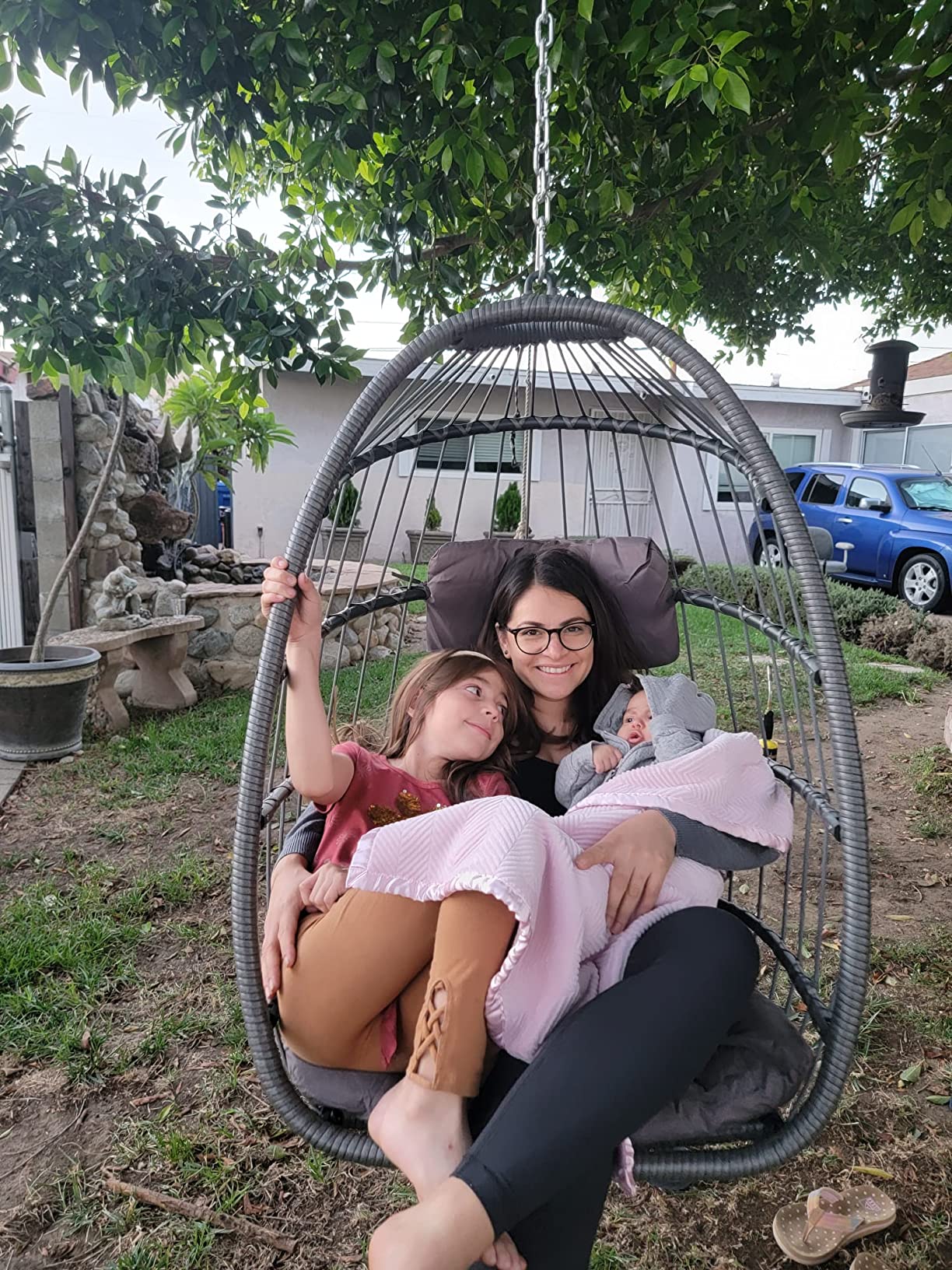 【Furniture】Wicker Rattan Hammock Egg Swing Chair with Hanging Chain, Aluminum Frame & UV Resistant Cushion