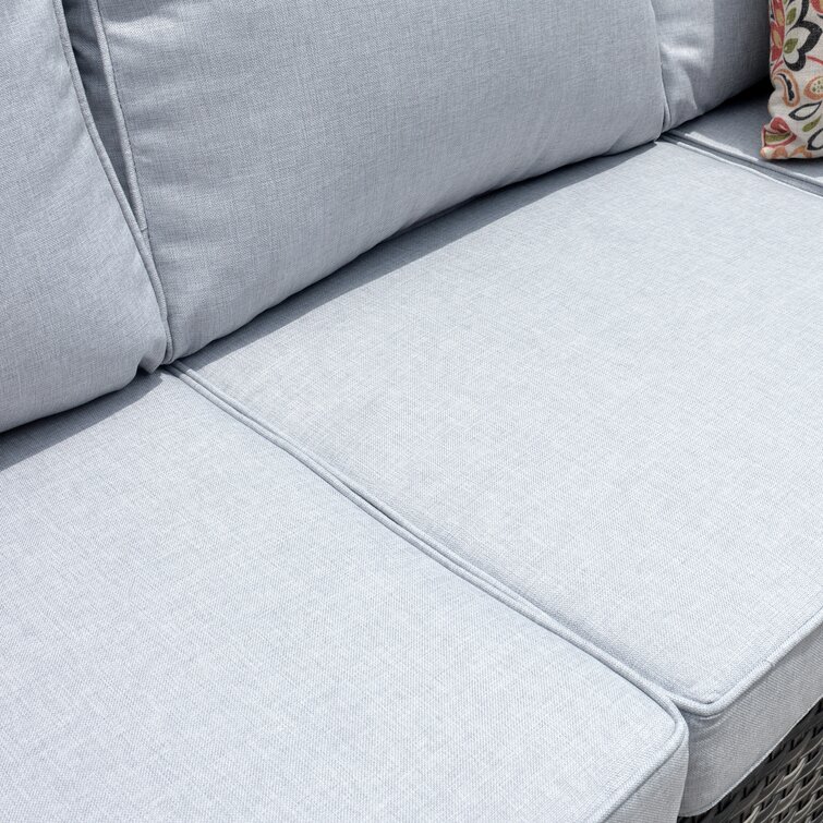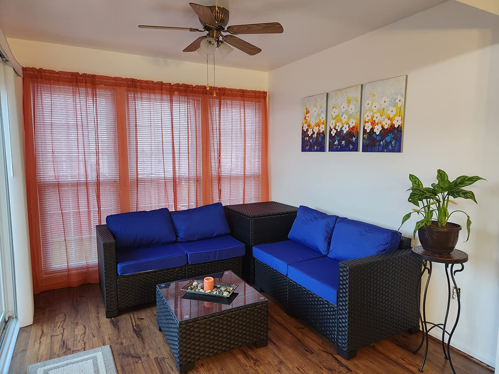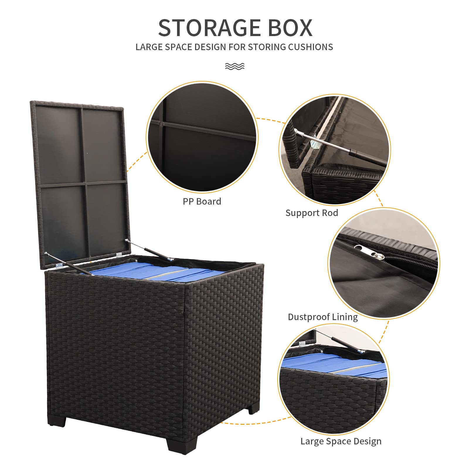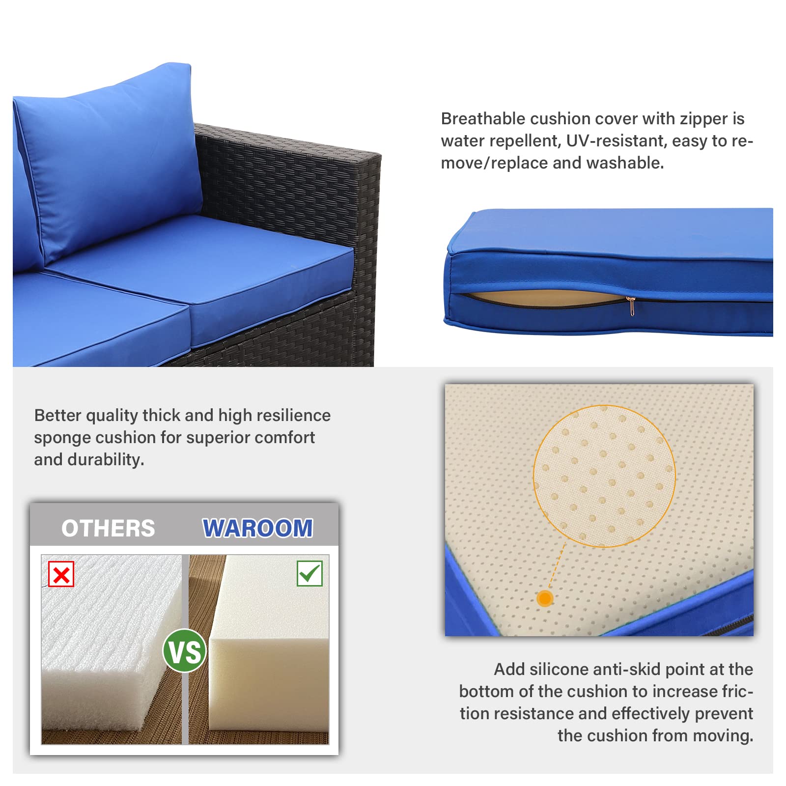 【Furniture】Outdoor PE Wicker Furniture Set 4 Piece Patio Black Rattan Sectional Loveseat Couch Set Conversation Sofa