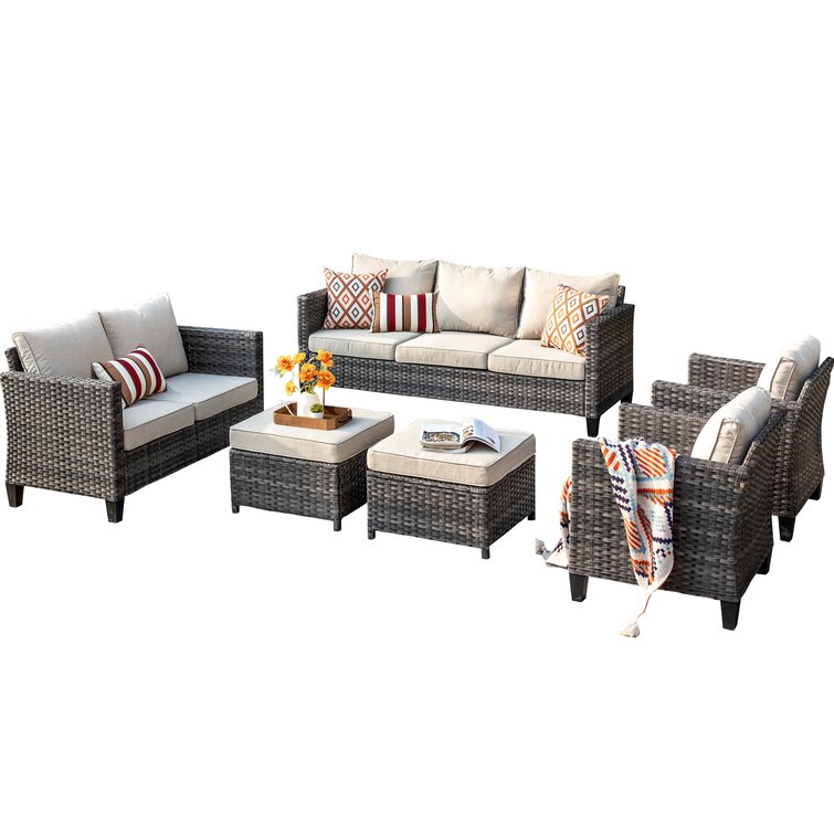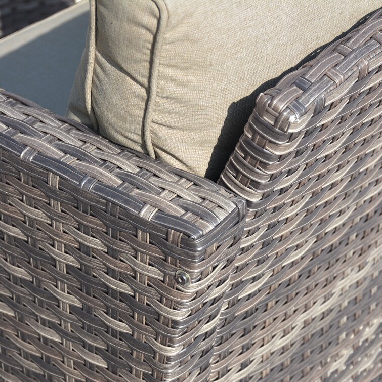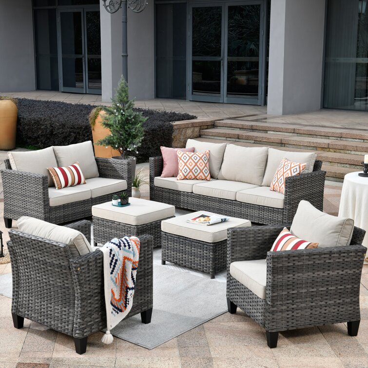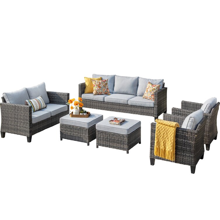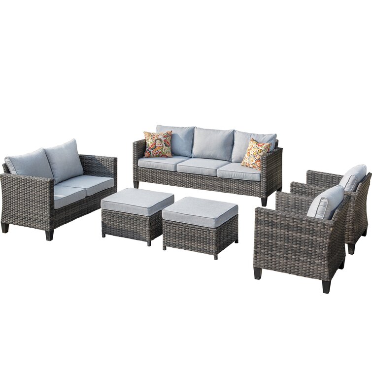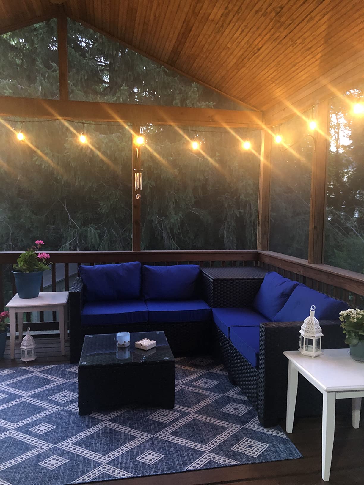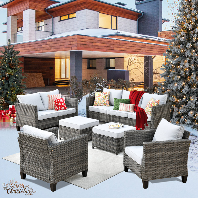【Furniture】Outdoor PE Wicker Furniture Set 4 Piece Patio Black Rattan Sectional Loveseat Couch Set Conversation Sofa