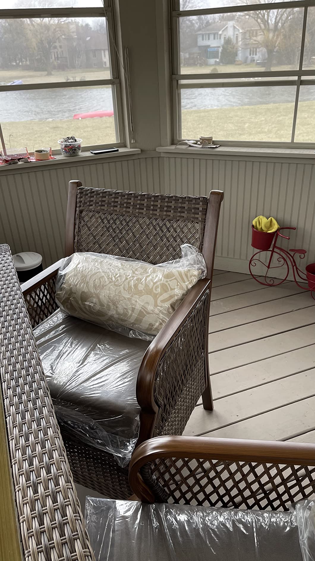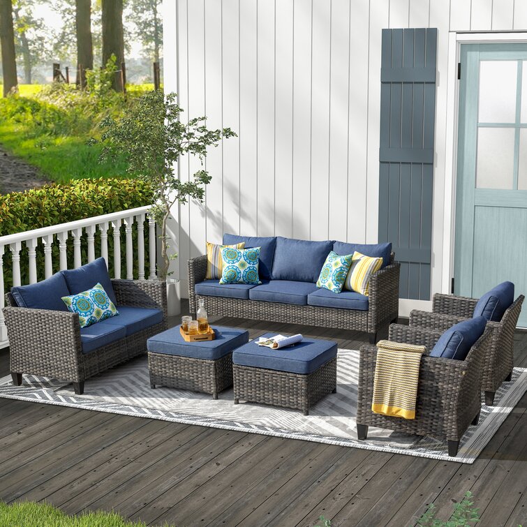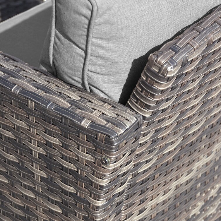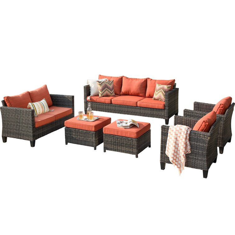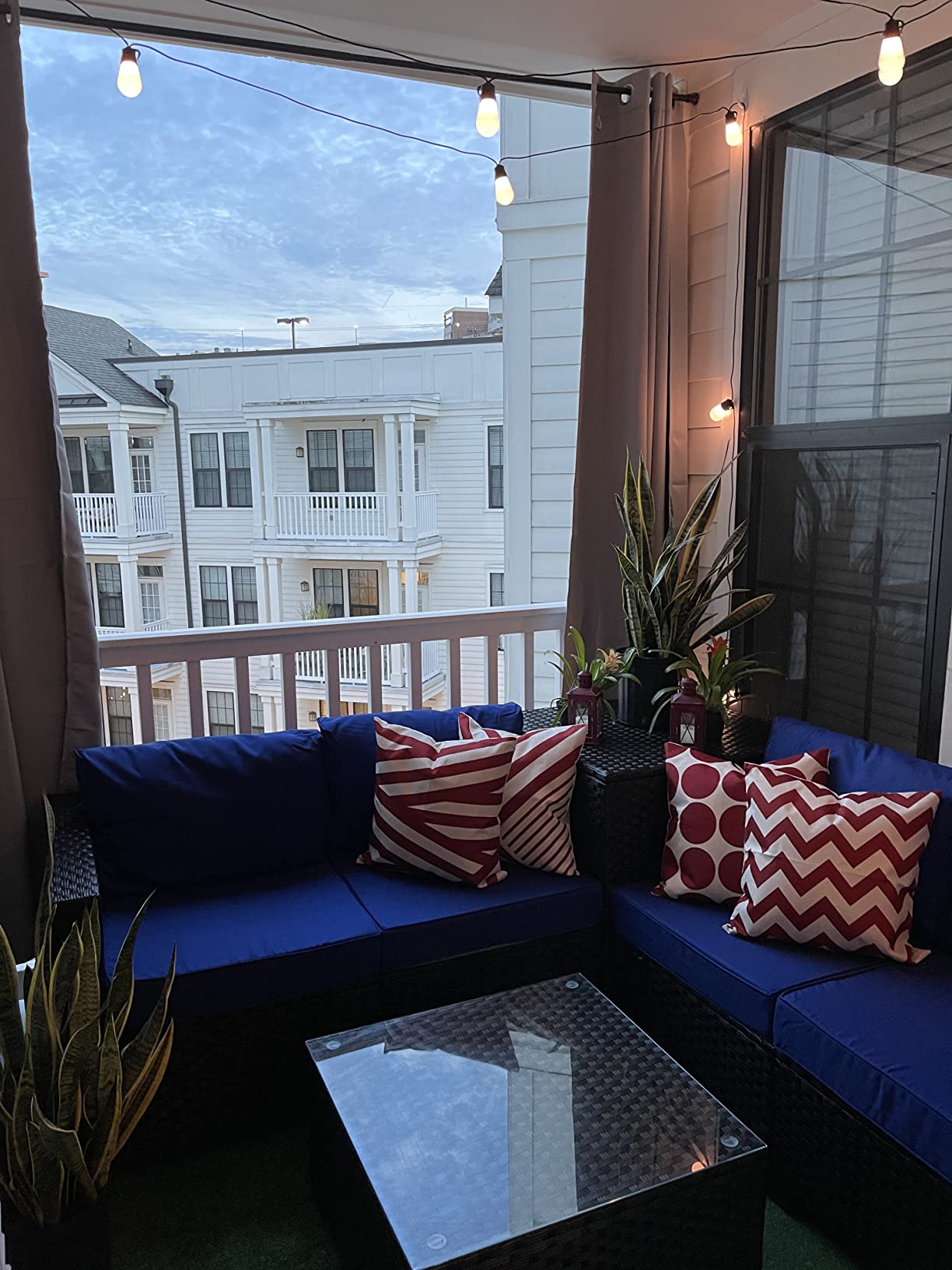 【Furniture】Outdoor PE Wicker Furniture Set 4 Piece Patio Black Rattan Sectional Loveseat Couch Set Conversation Sofa
