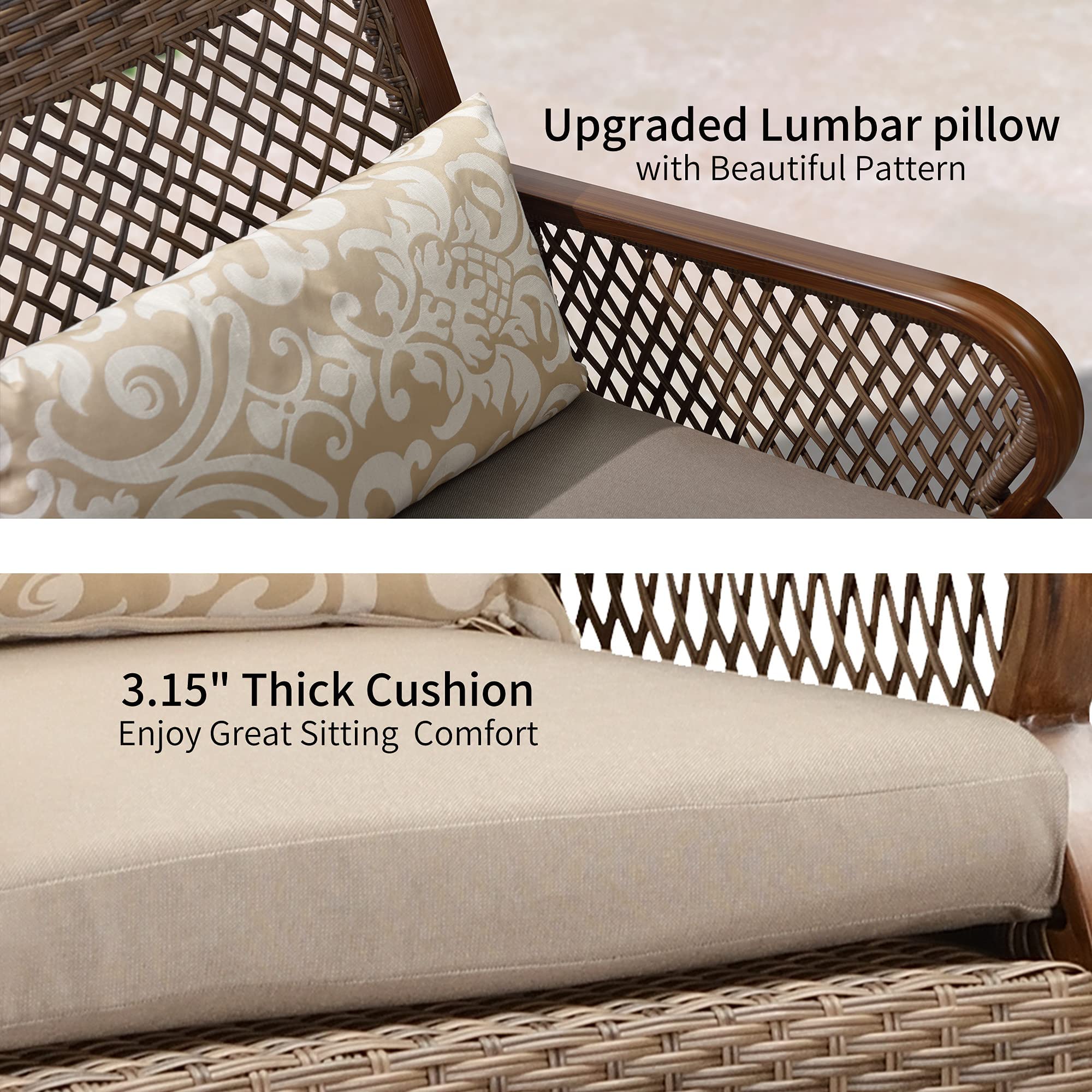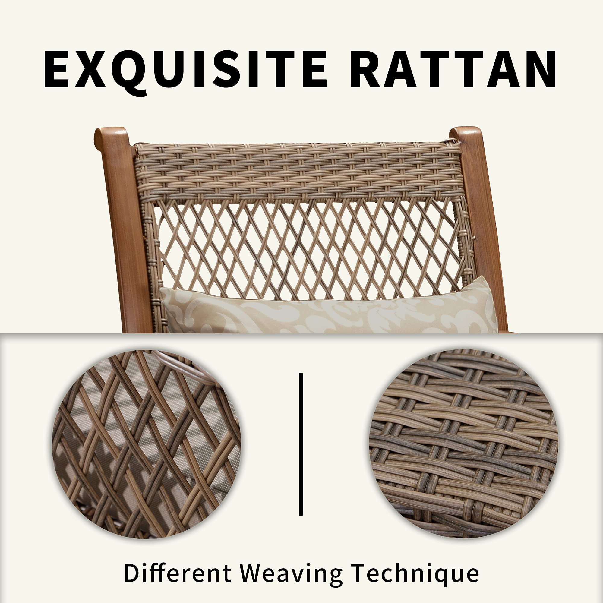 【Furniture】Outdoor Swivel Rocker Patio Chairs Sets of 2 and Matching Side Table - 3 Piece Wicker Patio Bistro Set