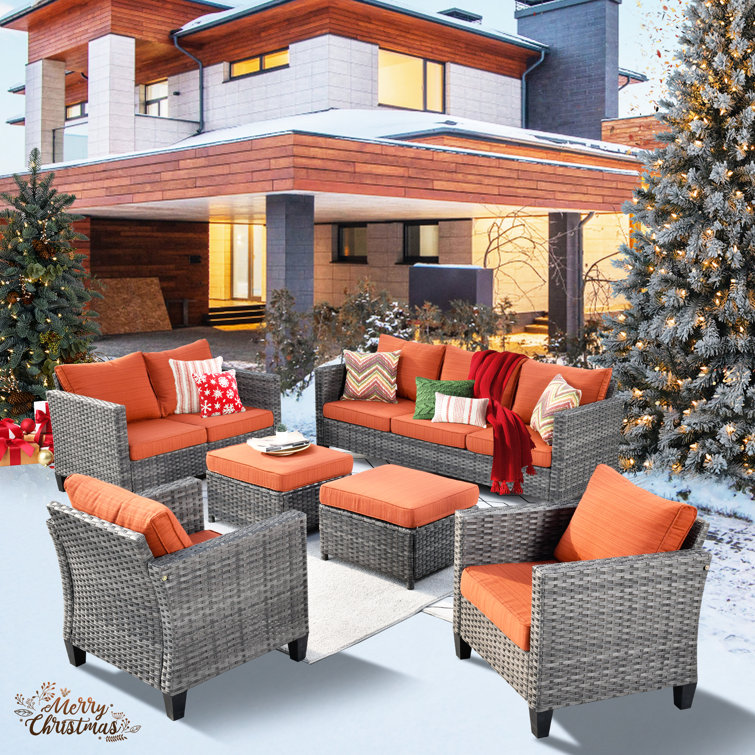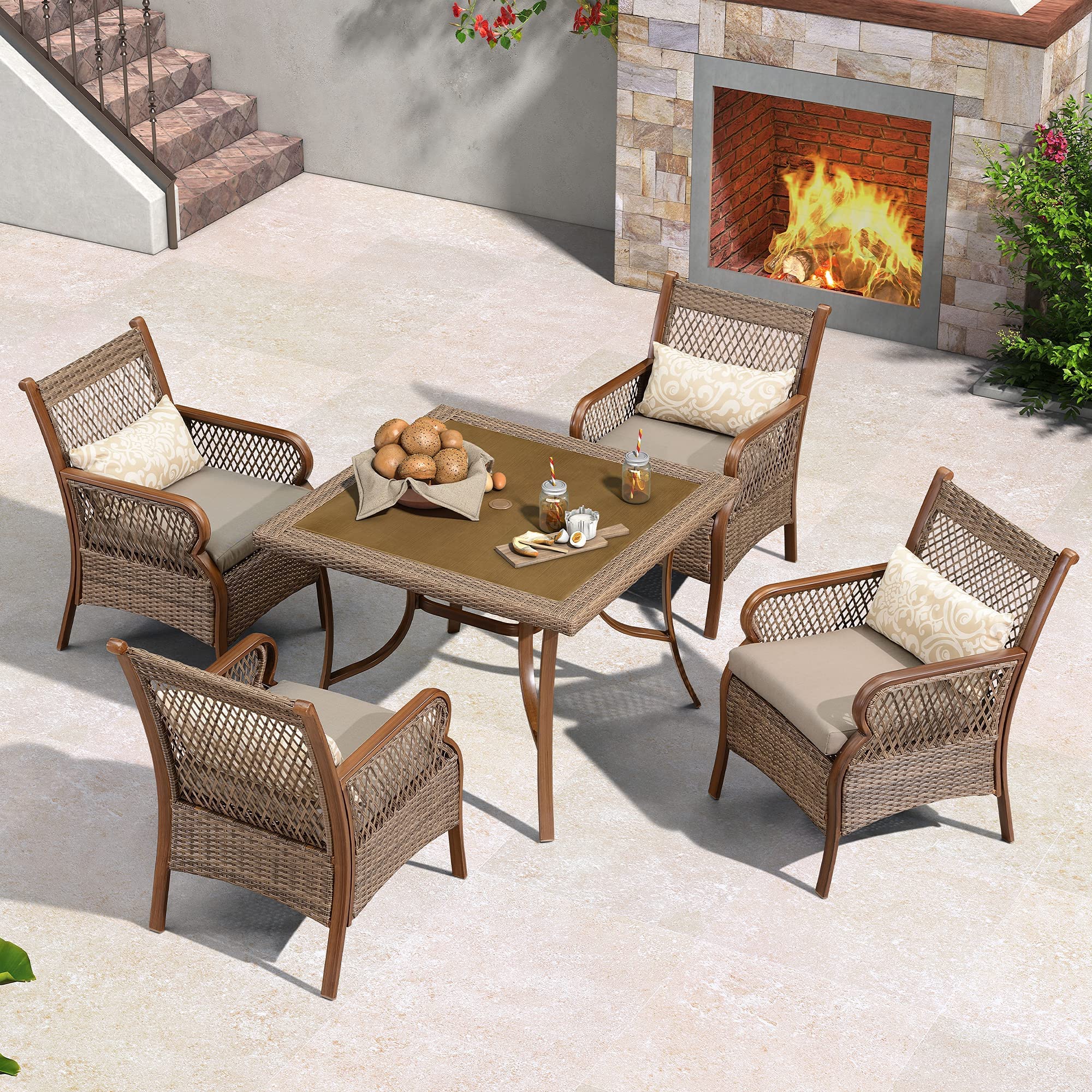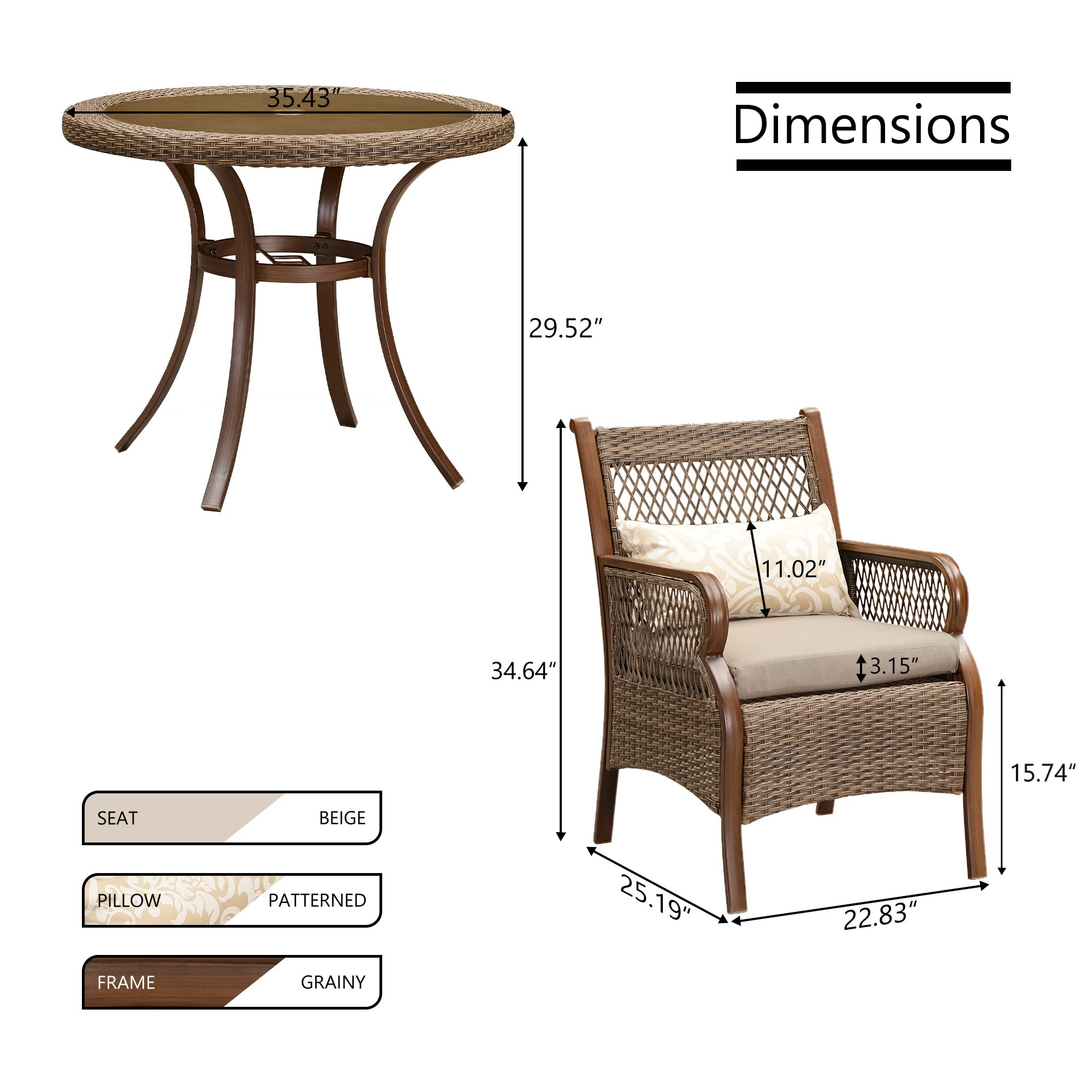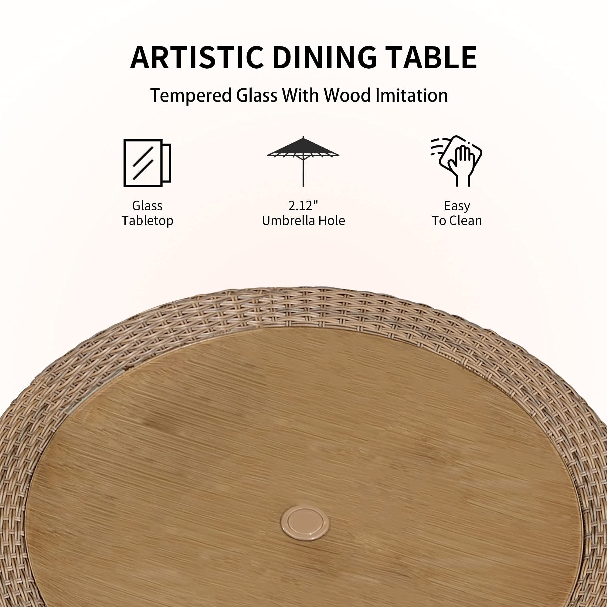 【Furniture】Outdoor Patio Dining Set for 4 Wicker Patio Furniture Sets with Aluminum Frame Round Dining Table