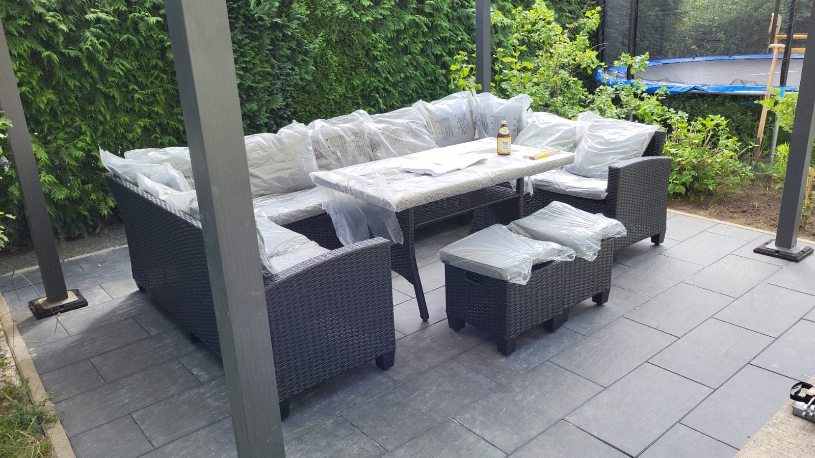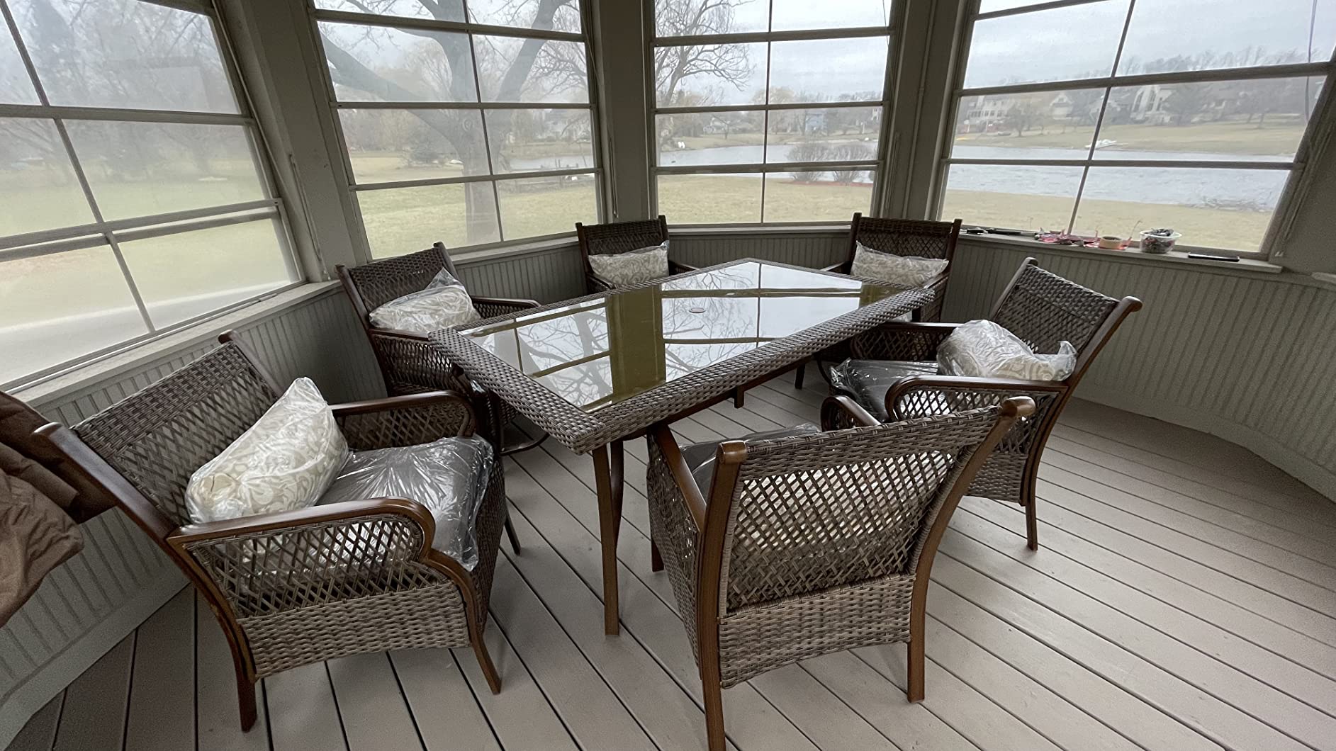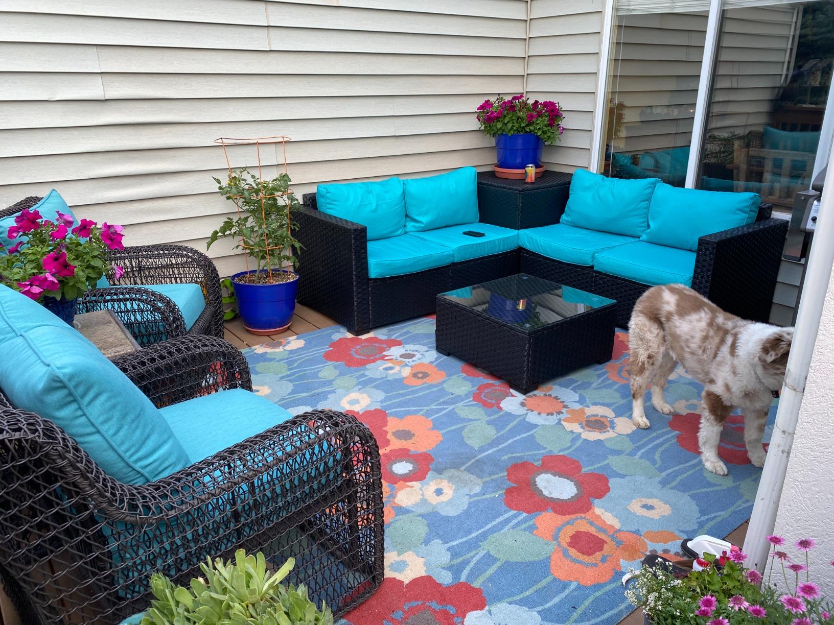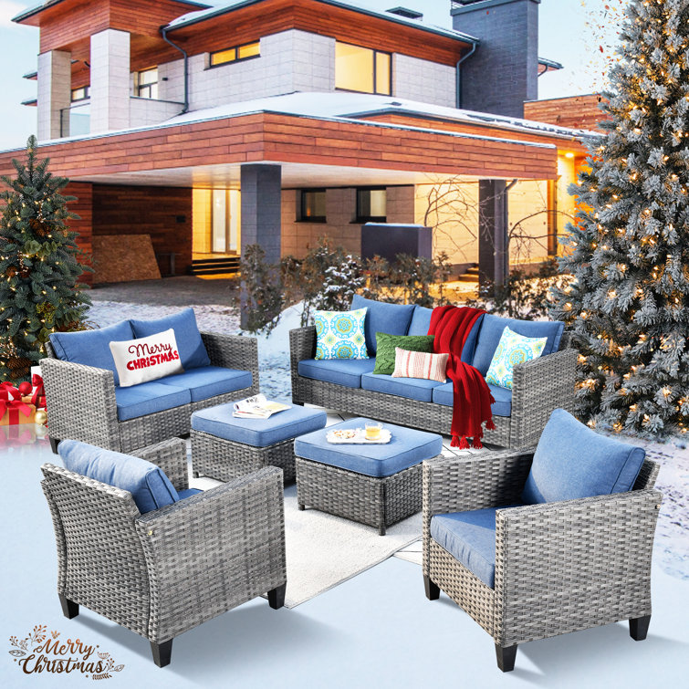 【Furniture】Outdoor Patio Dining Set for 4 Wicker Patio Furniture Sets with Aluminum Frame Round Dining Table