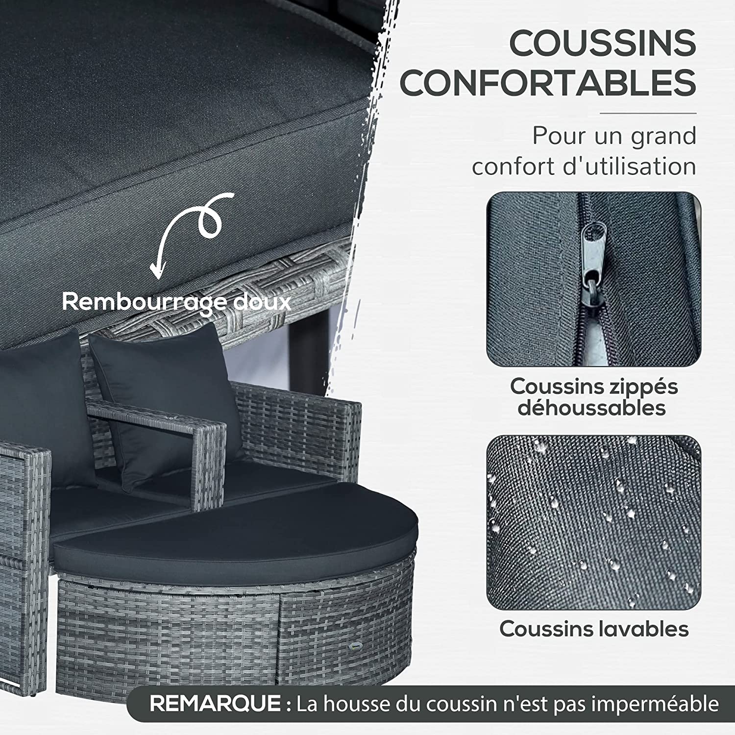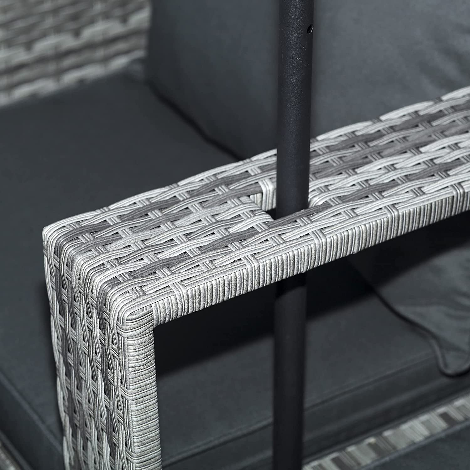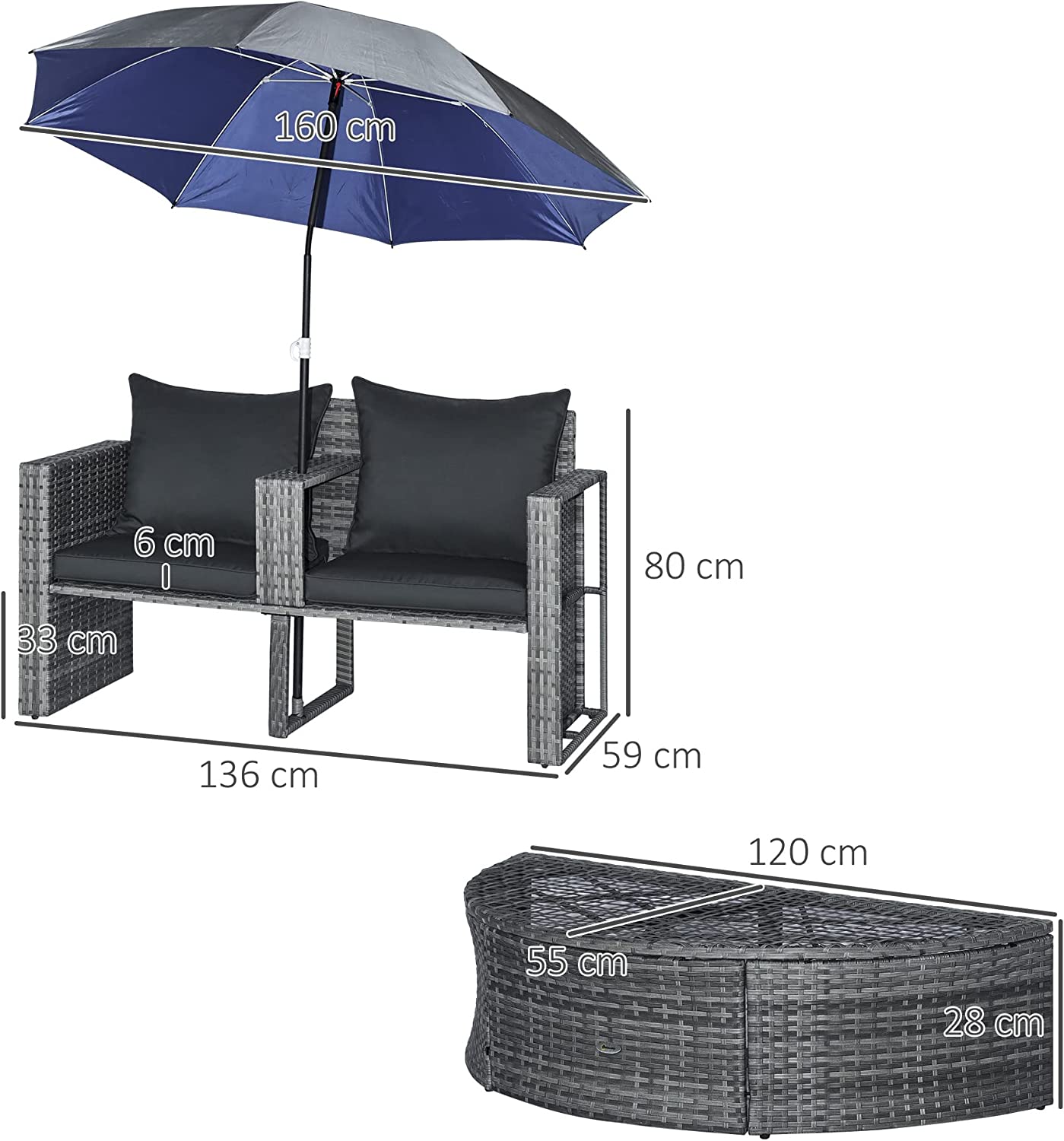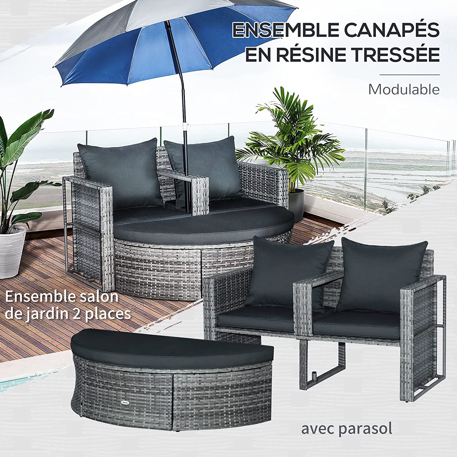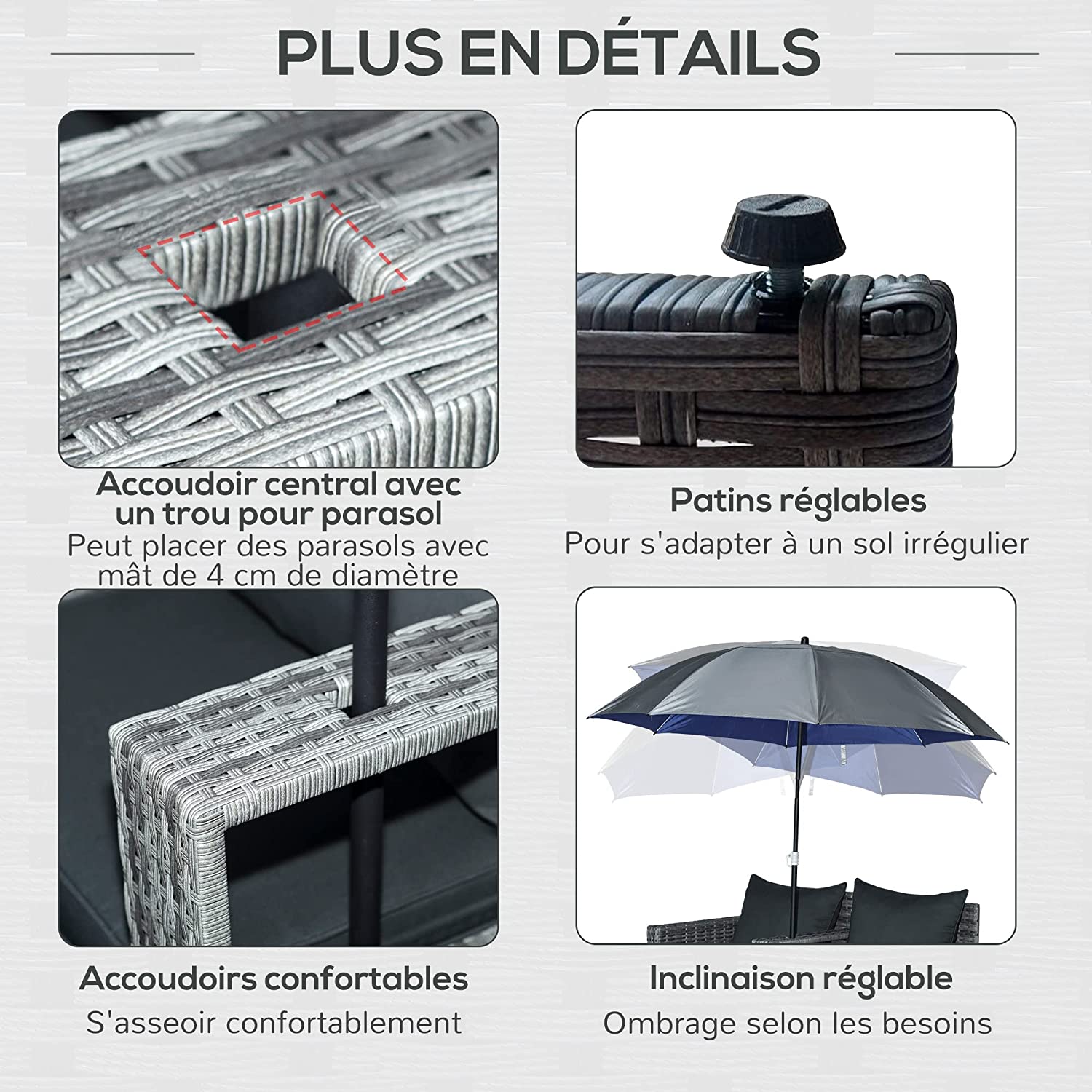 【Furniture】 Ensemble de Salon de Jardin 2 pièces en résine tressée - canapé 2 Places avec Coussins + Parasol + Repose-Pieds - Gris