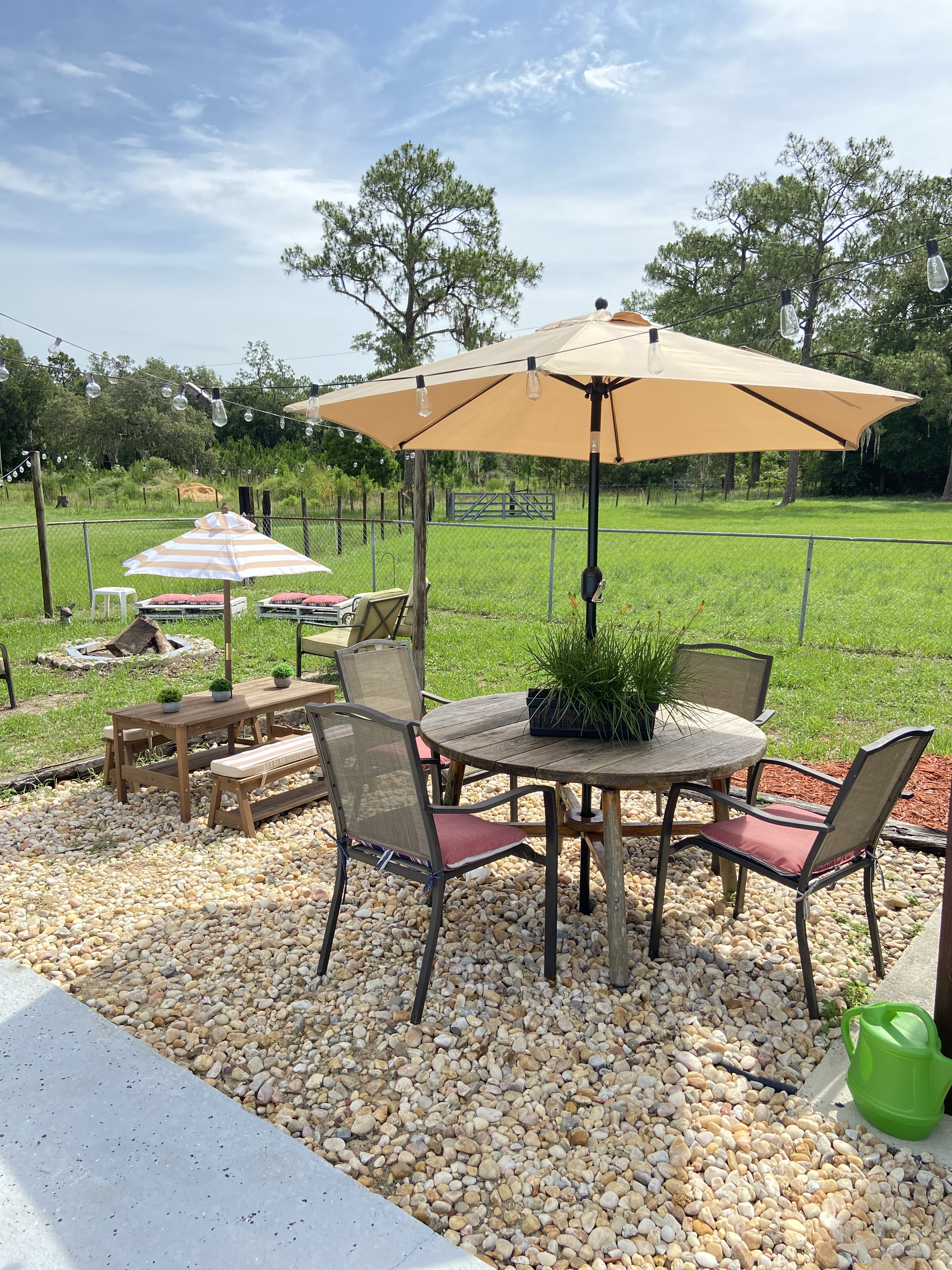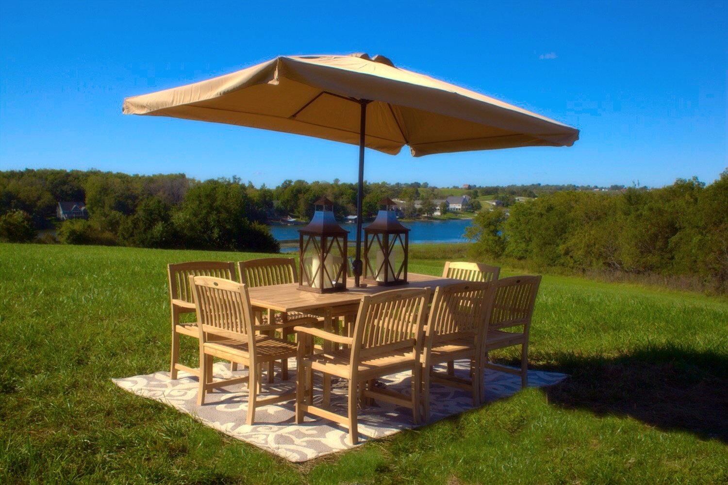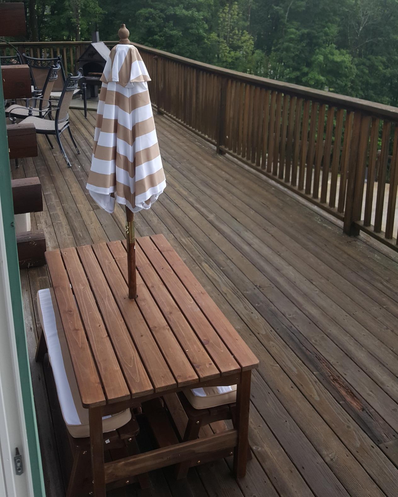 【Furniture】Outdoor Wooden Table & Bench Set with Cushions and Umbrella, Kids Backyard Furniture