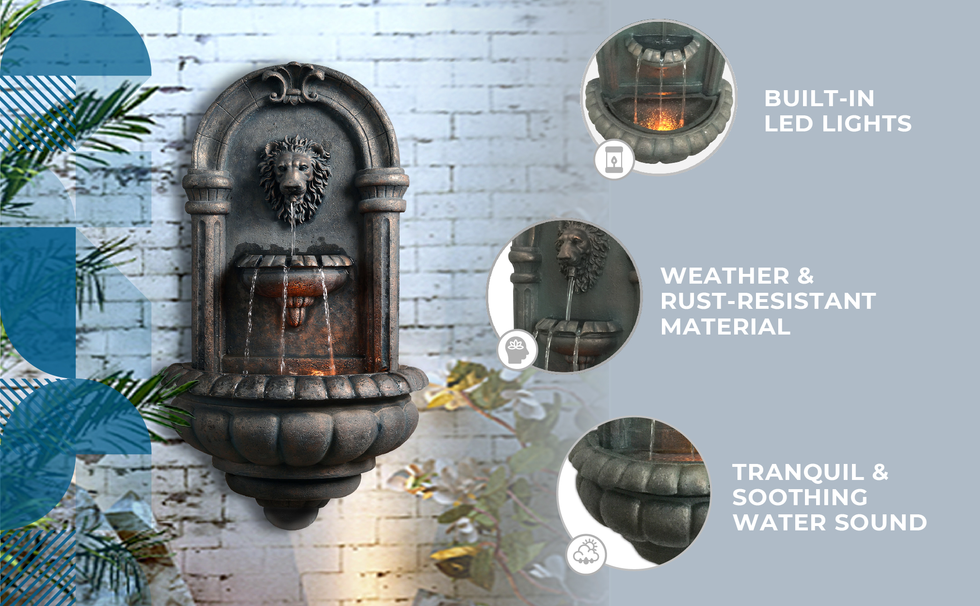 - GARDEN DÉCOR: Decorative lion wall fountain statue will provide a tranquil and soothing addition to your outdoor living space, yard, or patio