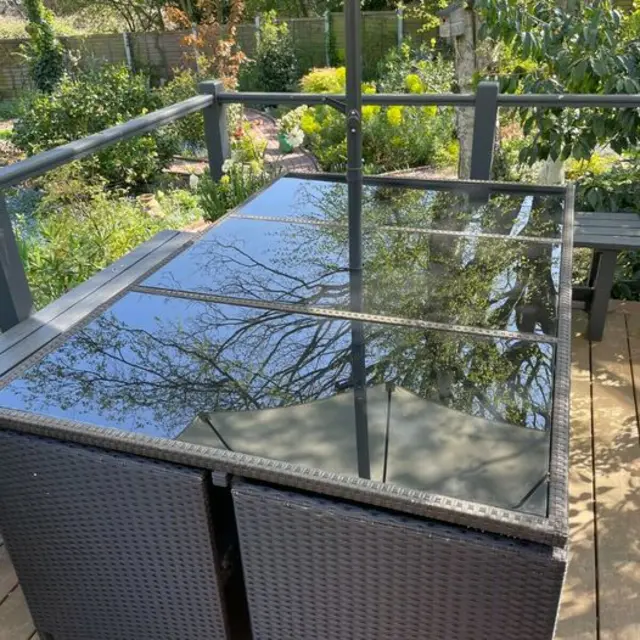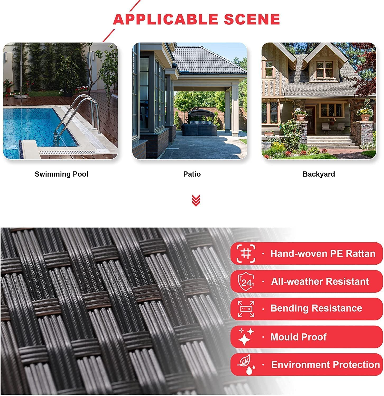 【Home&Garden】9 Pieces Patio Dining Sets Outdoor Space Saving Rattan Chairs with Glass Table