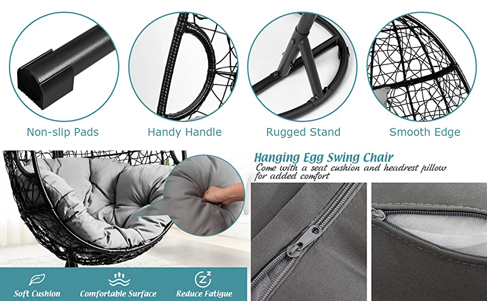 - Quick Maintenance & Assembly: The cushion seat and pillow features a zipper to conveniently remove the inner cushion for easier cleaning. Quickly assemble the whole chair with detailed instruction and sufficient accessories. Relax yourself soon in this hanging hammock chair.
