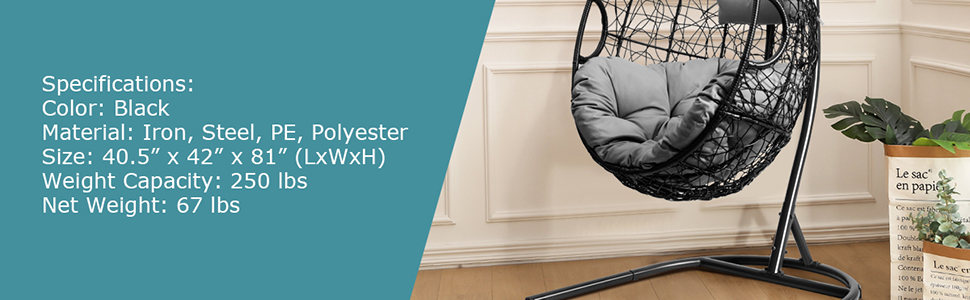 - Indoor/Outdoor Use: The swing chair is designed for both indoor and outdoor use. Unique egg-shape appearance blends with the surrounding environment better and adds a special leisure feeling. ❤️❤️❤️Please kindly note: This hammock stand and hammock chair set will be shipped in 2 boxes.❤️❤️❤️