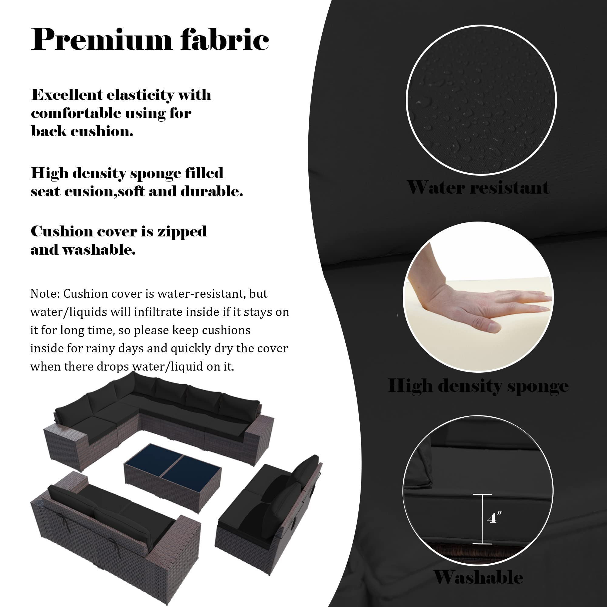 【Furniture】Outdoor Patio Furniture Sets 12-Pc Patio Sectional Furniture with Table & 10 Thickened Cushions