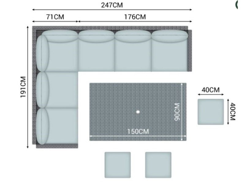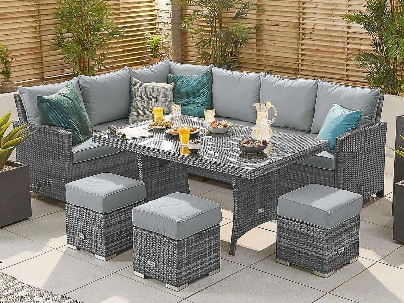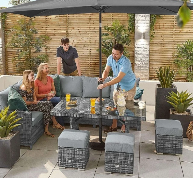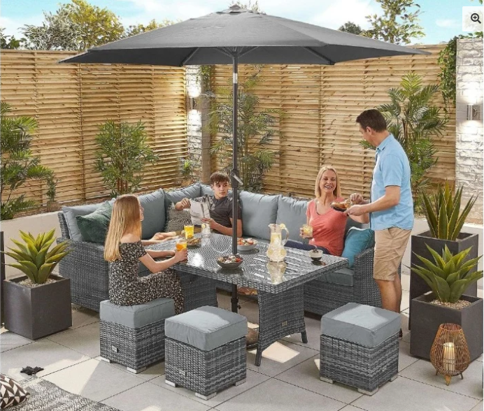 【Home&Garden】Nova Outdoor Living Cambridge Left Hand Corner Dining Set with Parasol Hole Table Corner Sofa