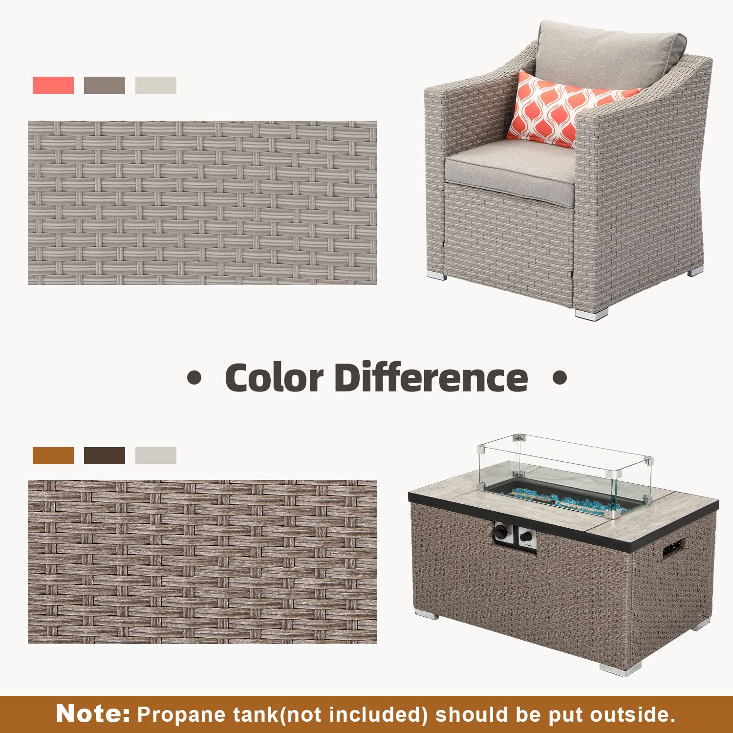 【Furniture】5-Pc Fire Pit Table Outdoor Furniture, Wicker Conversation Set, 4 Pillows w 32" Wicker Fire Table