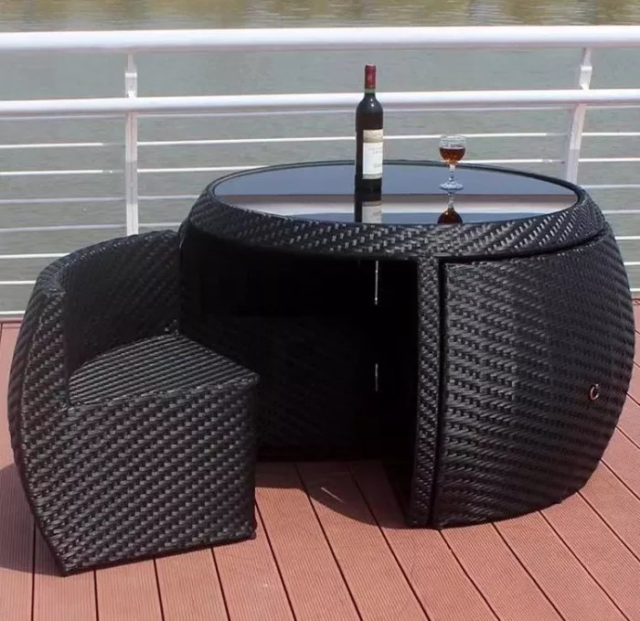 【Furniture】Outdoor balcony leisure rattan chair + table five-piece open-air sun room courtyard