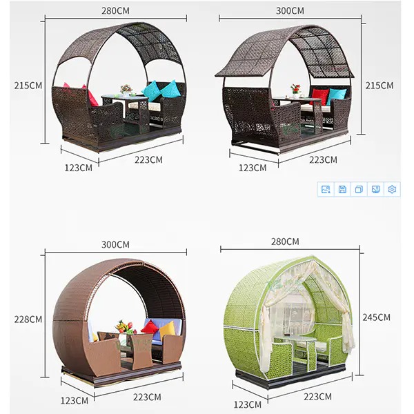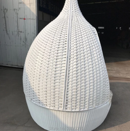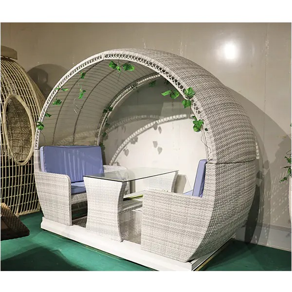 【Home&Garden】Outdoor Rattan leisure Daybed outdoor Furniture , Roofed Lounger Wicker Patio Chaise Lounge Daybed for poolside,hotel white