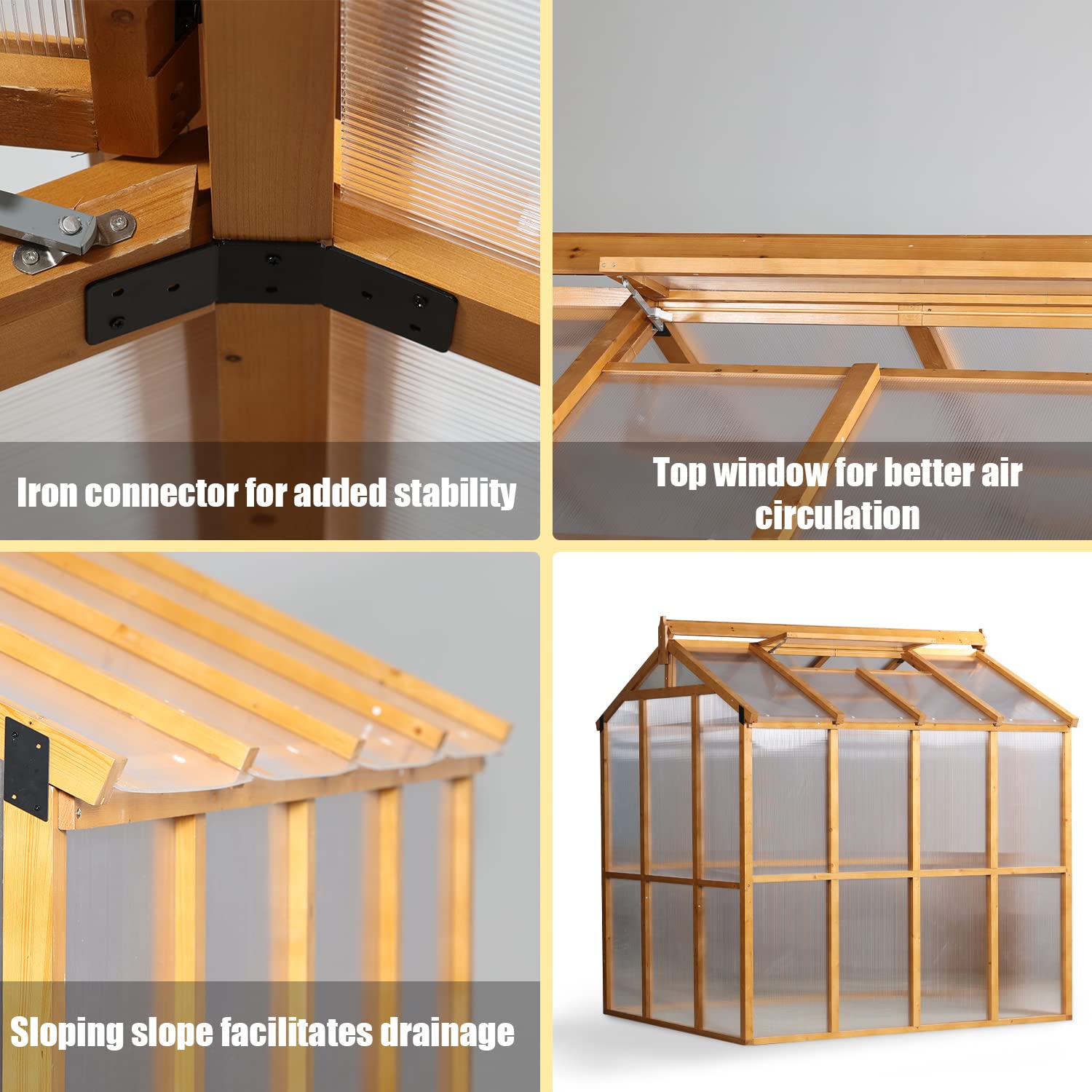 【Home&Garden】6x8 FT Hybrid Polycarbonate Greenhouse 2 Vent Window with Lockable Hinged Door