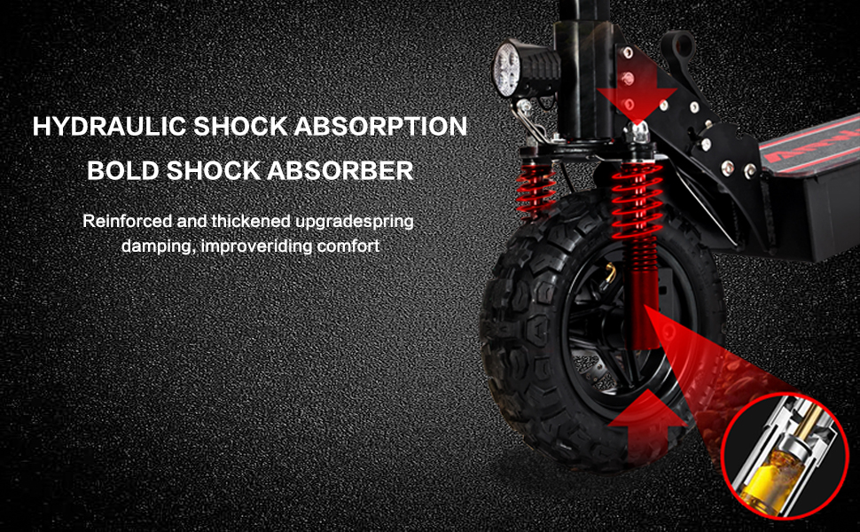 Safe, Comfortable and Style - The 11 " thickened Heavy Duty Vacuum Off-Road Tires have high elasticity and wear resistance. 160MM disc brakes and EBAS e-brake provide powerful braking force and shorten the braking distance and a wider deck to stay balanced on and the thickened frame structure can load up to 440 lbs.The most popular LCD screen is easy to view. The scooter has ultra-bright front LED headlight, running boards with cool colorful LEDs