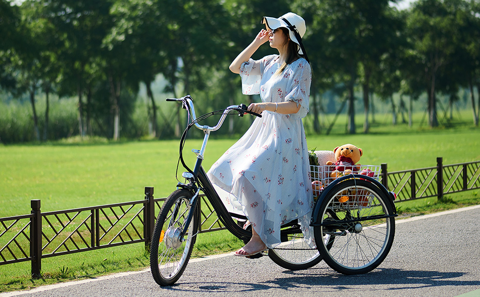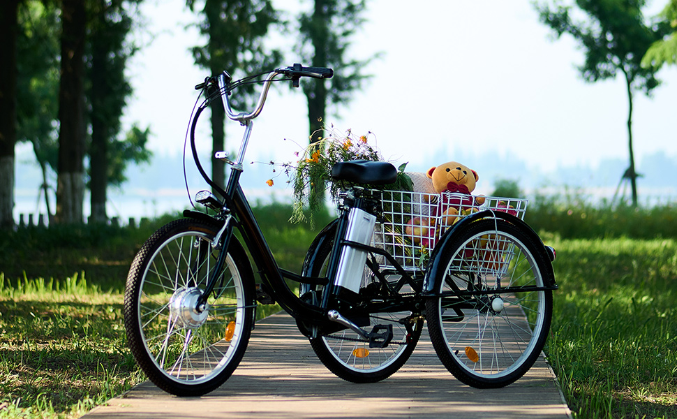 • 【Sports&Outdoors】3 Wheel Electric Bike for Adults with 250w Motor, Bike Tube, Removable 36V 10Ah Lithium Battery