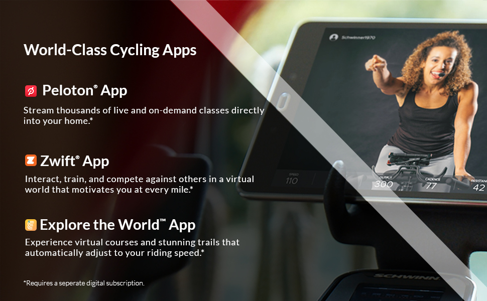 • Use with popular third party cycling apps like Peloton and Zwift on your smartphone, tablet or smart TV, and, with a JRNY account, during your workouts transmit bike metrics, such as cadence and power, to compatible cycling apps via Bluetooth connectivity (Cycling app subscriptions not included.)