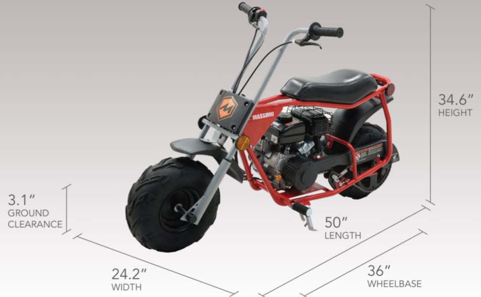 The All-New, totally redesigned MB100 now features the most dominant engine is any mini bike for the youth. Massimo has created an even smaller Mini bike for our youth! With a Four Stoke Single Cylinder engine and 2.5 horse power. Once you've ridden a mini bike with such massive torque and high-end power, you won't even take a second look at a 2-stroke motors again. This mini bike has an easy to start recoil pull start ignition. Equipped with a Max Speed of 15mph and 79cc Displacement. This mini bike comes virtually fully assembled and ready to race.