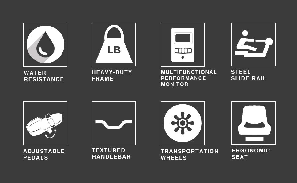 - WATER RESISTANCE: The water tank holds water at a 60-degree angle with 16 hydro blades that provides resistance.