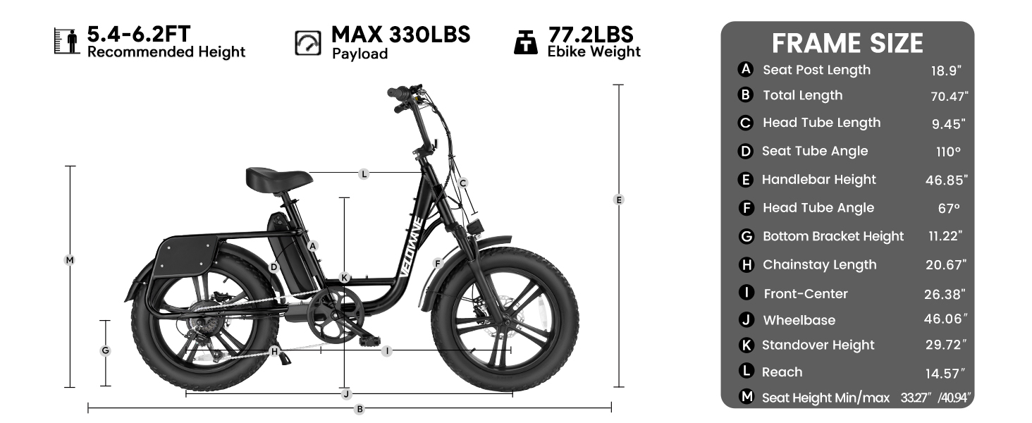 【20"x4.0"All-Terrain Fat Tire】Fat Tire provides better stability on all terrains, such as snow, beach, mountains or hills, offering a more comfortable and safer riding experience compared to conventional tires.