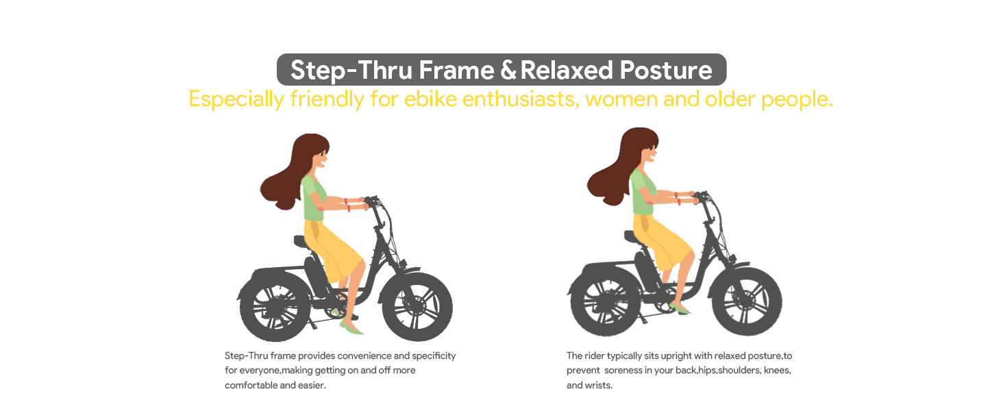 A: Very suitable, Prado S is VELOWAVE design a daily riding step-thru electric bike, very convenient to get on and off, raised bike head is your riding position more comfortable, suitable for electric bicycle players, women, and older people.