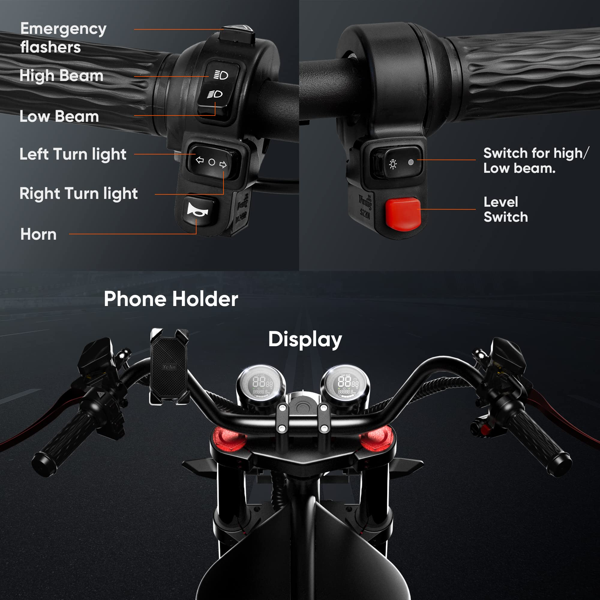 【Sports&Outdoors】eAhora M1P 37Mph 2000W Electric Motorcycle for Adults, 60V 30ah Lithium Battery Rear Motor