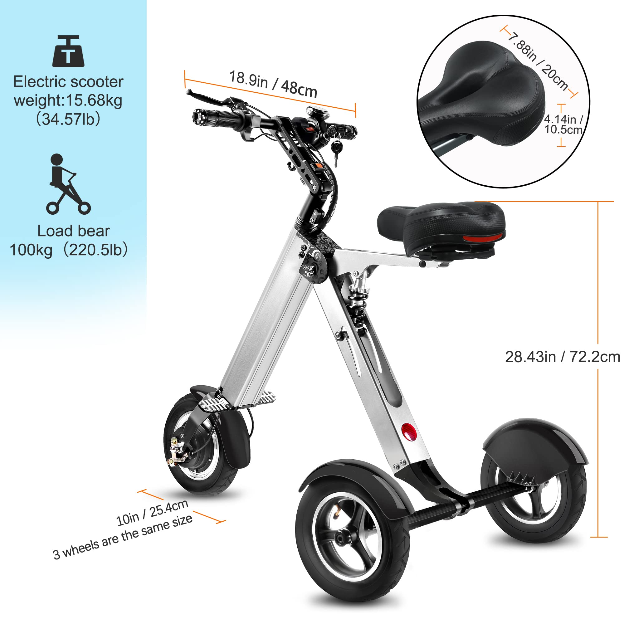 【Sports&Outdoors】Electric Fat Trike 750W Motor & 48V Lithium Rechargeable Battery - Etrike 24 Inch Fat Tire